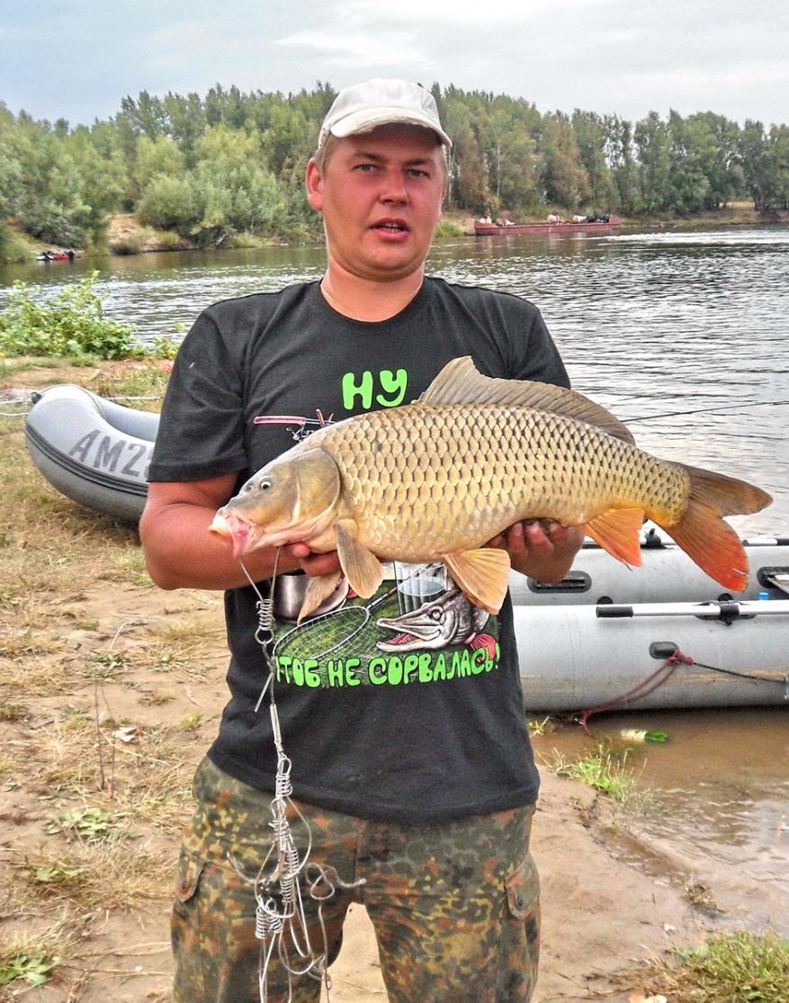 ID:	3765785 Принимайте в клуб сазанятников !!! Фигня ,конечно . 2800 всего. Но, сазан , же. Мой первый сазан!:D Тут же сазана ловит Alladin. Больше пока нет. Рыба клюет, конечно, между делом . Караси,белоглазки и почая шняга . Я на вторую удочку тоже пару карасиков под кило достал. Как будто фанеру с ладошку у себя дома.;) Никаких эмоций. У nic-a тоже одна шняга .Он ,похоже, свой лимит поклевок вчера выбрал. Справа от нас ,буквально в 20 м,на основной струе пытается заякориться наш сосед по стоянке. Его сносит,но он упирается и наконец становится. Вскоре у него поклевка. Тянет. Видно ,что не мелочь. Мы с товарищем к нему спиной сидим. Наши комментируют . Всё ,в корч ушел. Зацеп. Смотрю.а он на куртку леску наматывает . Вырвал рыбину из корча. Тянет дальше. Вот уже и показалось что-то. Ни х… себе вывернулось!:o Подсак опустил и двумя руками в него вцепился.Еле поднял. Мелькнул огромный оранжевый хвост. Пятнаха минимум, вымолвил я.