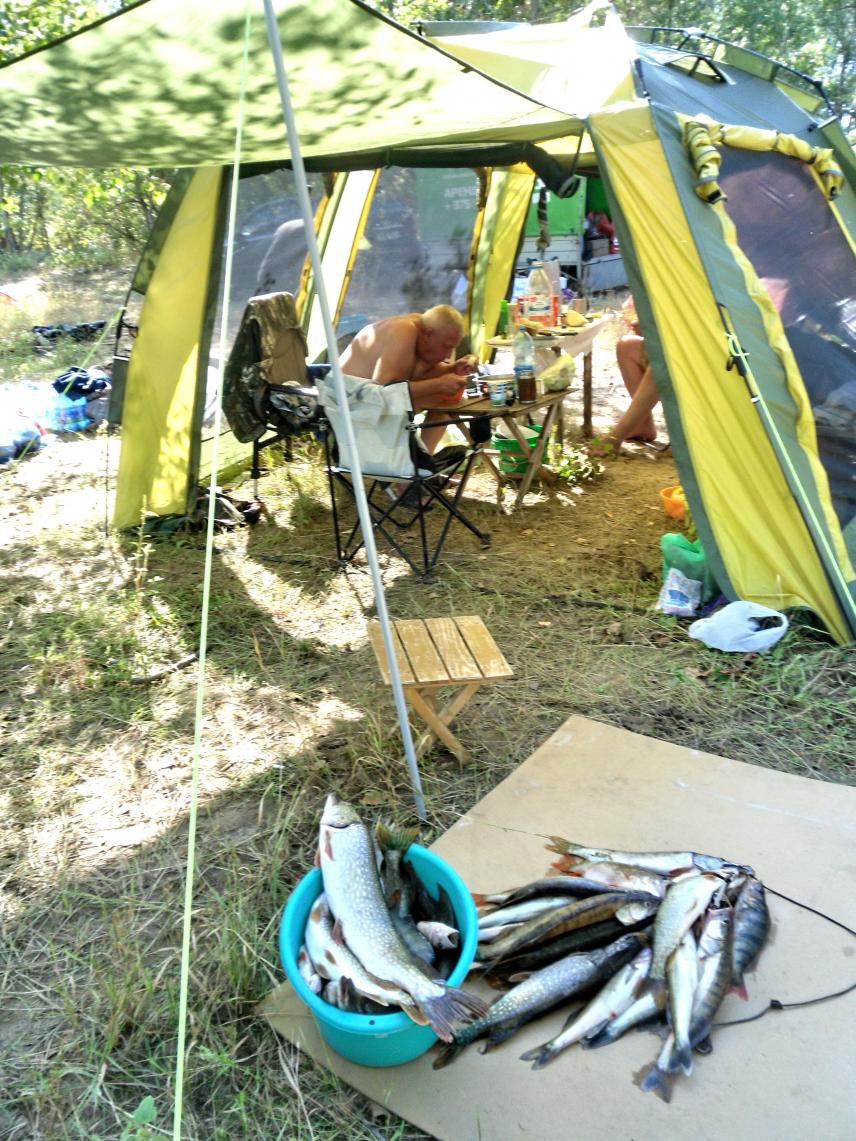 А потом все 7 дней без дождей и катаклизмов . 25-30 днем и 15+- ночью. Температура воды в Волге в это время от 20 до 23 градусов. Купайся-не хочу. Соседи попались хорошие. И один из них тот самый спец ,из моего отчета 2015 года, с трофейным сазаном в 18 кг.Это ружье на стене,которое выстрелит в конце пьесы(моего отчета):p Кстати , громкая музыка и гоп -ца-ца на этих берегах не приветствуется и отсутствует. Тут люди рыбу ловят.:D