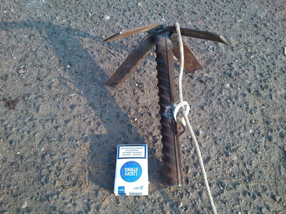 ID:	3731543 для озера вес 2.7 кг. размер 30*30 разработка проверен работает...при глухом зацепе на моторе большая вероятность сохранить якорь, разорвать пластиковый хомут и якорь выходит обратной стороной...могу изготовить и для реки вес будет 4кг... цена 200т.