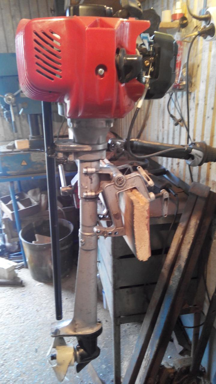самодельный транец + самодельный мотор , голова от триммера , нога салютовская 250$ ,