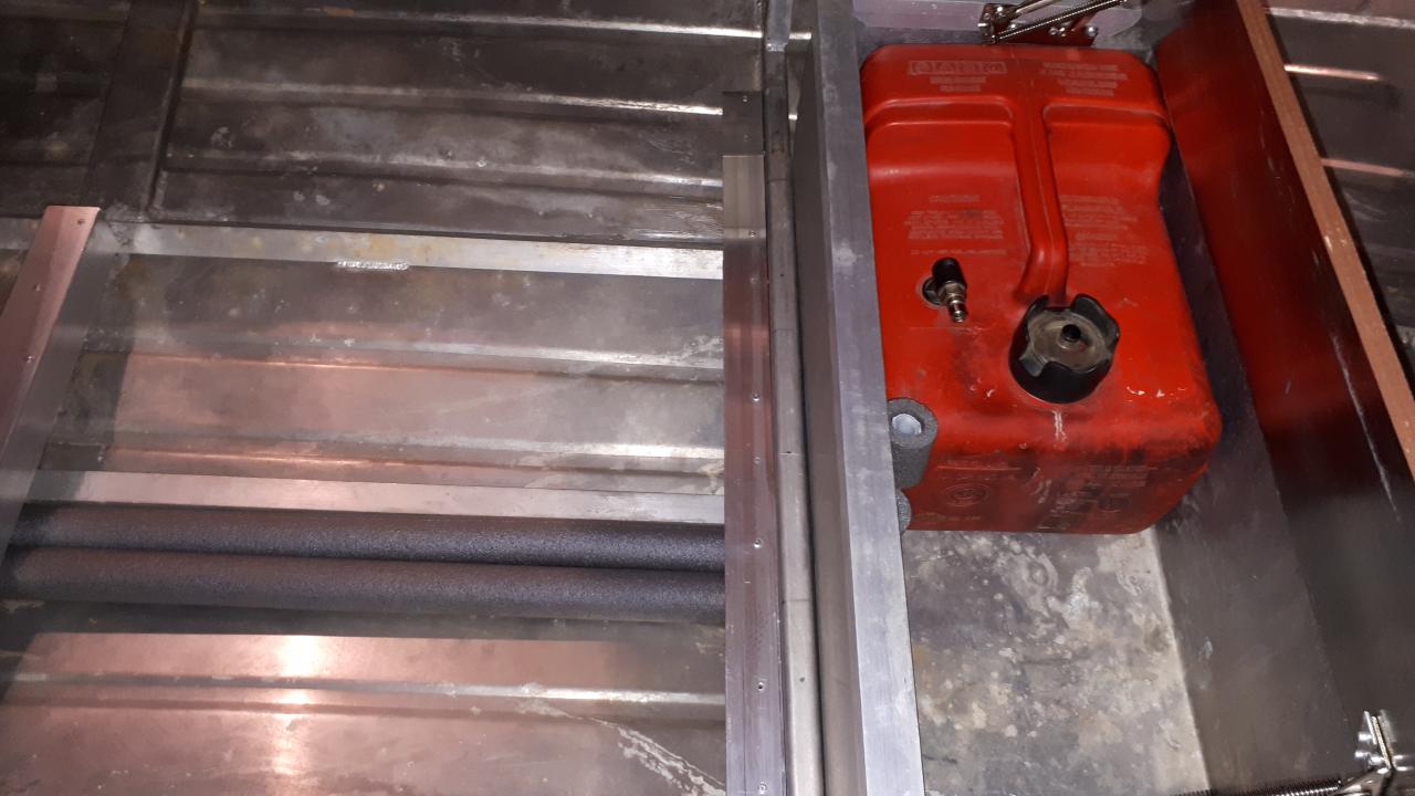 Сделан кормовой рундук. Блоки плавучести перенесены под палубу. В центральном рундуке установлен топливный бак и отсек для аккумулятора.