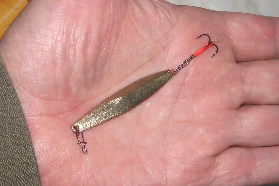 . Я вообще-то тоже не мельчил, поскольку пошел по береговым свалам по глубинам от 7 до 4 метров, и блесну нацепил соответствующую - бронзовую торпеду 50 мм и 8+ граммов с тройником на подвеске: