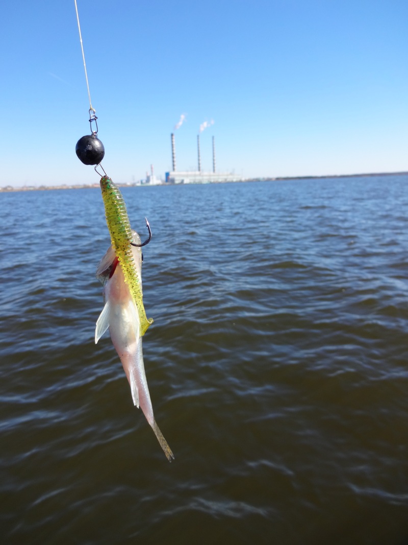 "Счастье" длилось не долго практически метровая волна (хотя в понедельник было еще хуже) скрадывала практически все поклевки, Часа два так точно не видел ни одной рыпки, а крюк постоянно пустой. Ну, что же, чтобы чуток увеличить чувствительность вновь перехожу на ин-лайн и чуток укорачиваю поводок. Вот и снова стал различать поклевки (опять потеряно пару часов, надо было сразу перевязываться).