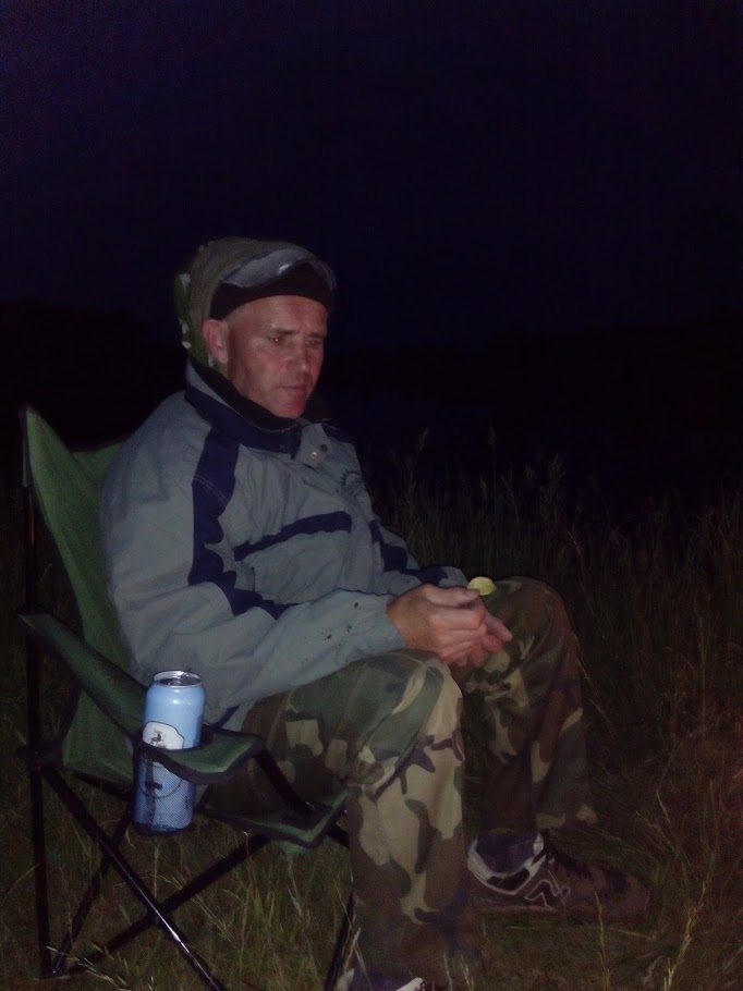 И даже поздневечернюю поклёвку чудища получили....когда подергун, ай, грю, лень на такую хрень отвлекаться от костра/пива...минут через 10 бам-бам-бам...звенит колокол....Подсечка - ПОДСАК, кричу Гене. Той ни то ни сё бежит...где, кричит, зламаю ж ноги..дзе ён..не бачу..у мяне ж няма фанарыка, як у тябе..ды и падсак зламаю, наступлю...усё, говорю, уже лекго, не надо...вытакскиваю густеринку с 3/4 ладони...почти с откусанной головой...выплюнула, сучка, метров за 5 до берега..Адреналин был по-любому. Чего и всем желаю