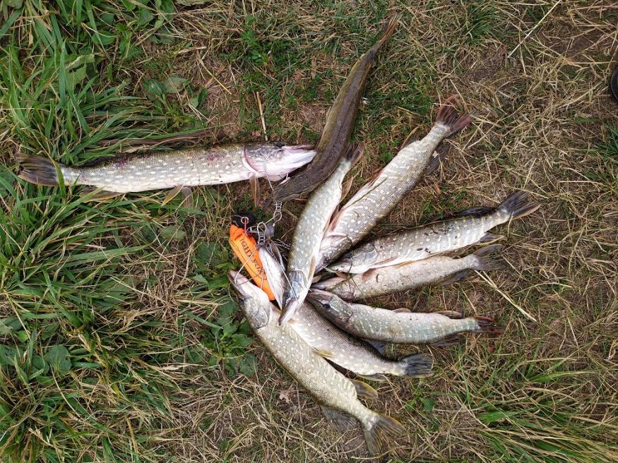 Некоторые караси больше карпов.Далеко не живцовый размер для местной щуки.