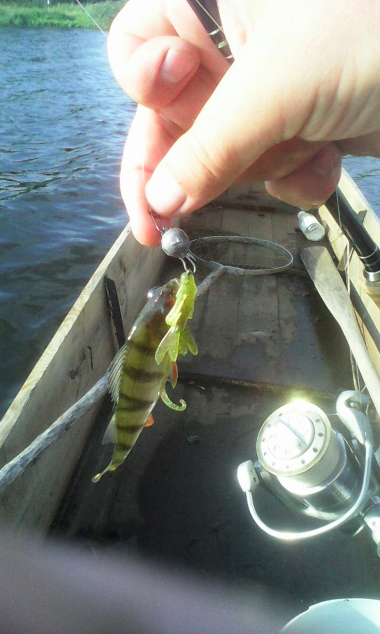 Подводя к лодке сначала показалось что это лещ, но после нескольких резких рывков показалось, что это сазан....оказалась щука...которая с трудом вместилась в "дачный" подсак...весы показали 2,8 кг. Флюровый поводок 0,3 не подвел, но и щука засеклась краем пасти...Больше ловить не хотелось и в 7.30 был дома, кроме щуки еще 15 окуней.