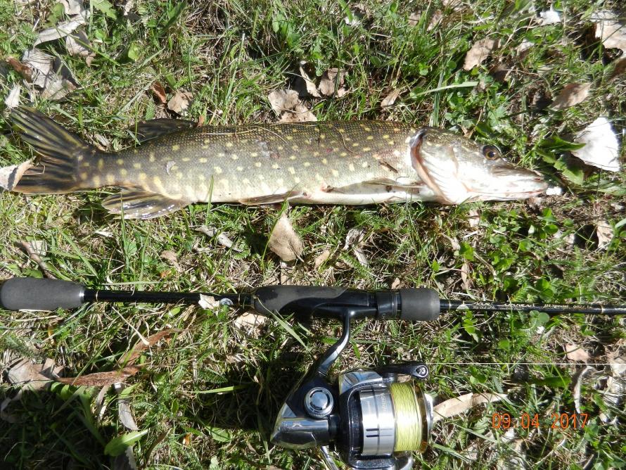 • Сегодня выскочил на пару часиков. Щука цапнула рачка от микрокиллера на джигголовке 3 гр.. После фото пятнистая отправилась в родную стихию. А вот окунь молчал, предполагаю еще занят размножением.