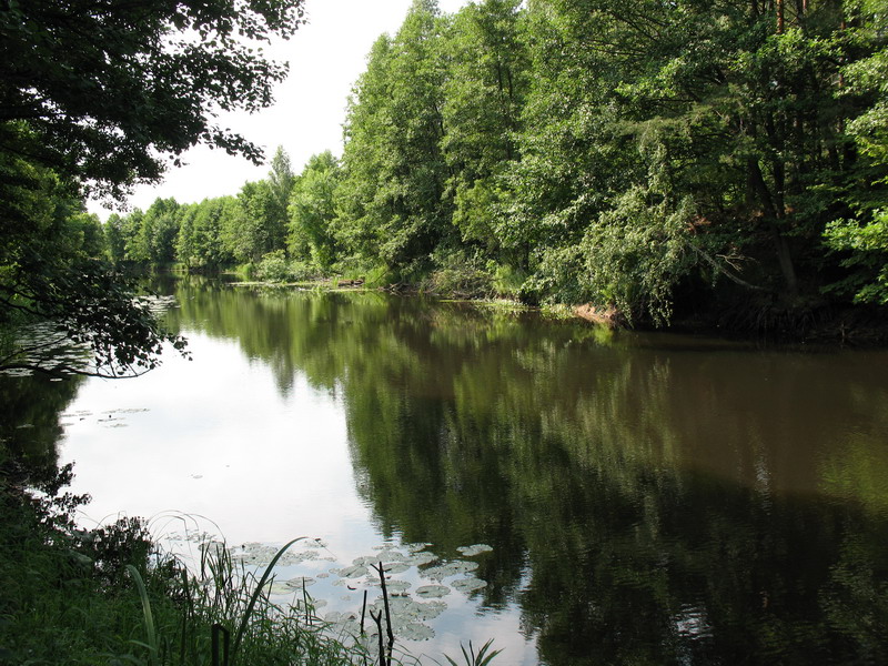 Воскресенье. С 7 до 11 совешил ритуальный обход знакомых мест недалеко от пос. Правдинский. Вода мутная, трава поднялась, еще немного и ловить можно будет только на попер, но даже несколько хороших ямок не принесли результатов. Зато покупался.