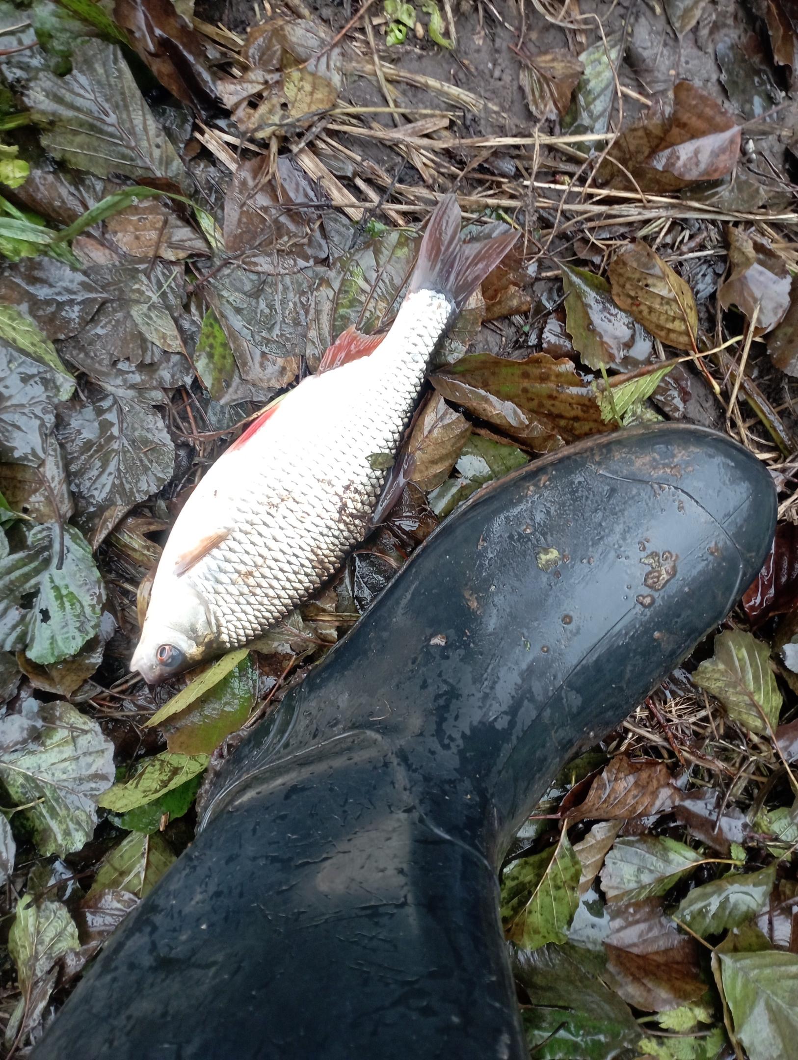 . В поисках хищника намахался спиннингом и веслами до "мышечной радости". Но всё-таки река смилостивилась и подарила одну щучку ( весы показали ровно 1 кг ). Периодически менял щучьи приманки на попла-поппер в поиске зачетной кпасноперки , но попадалась лишь мелочь живцового размера