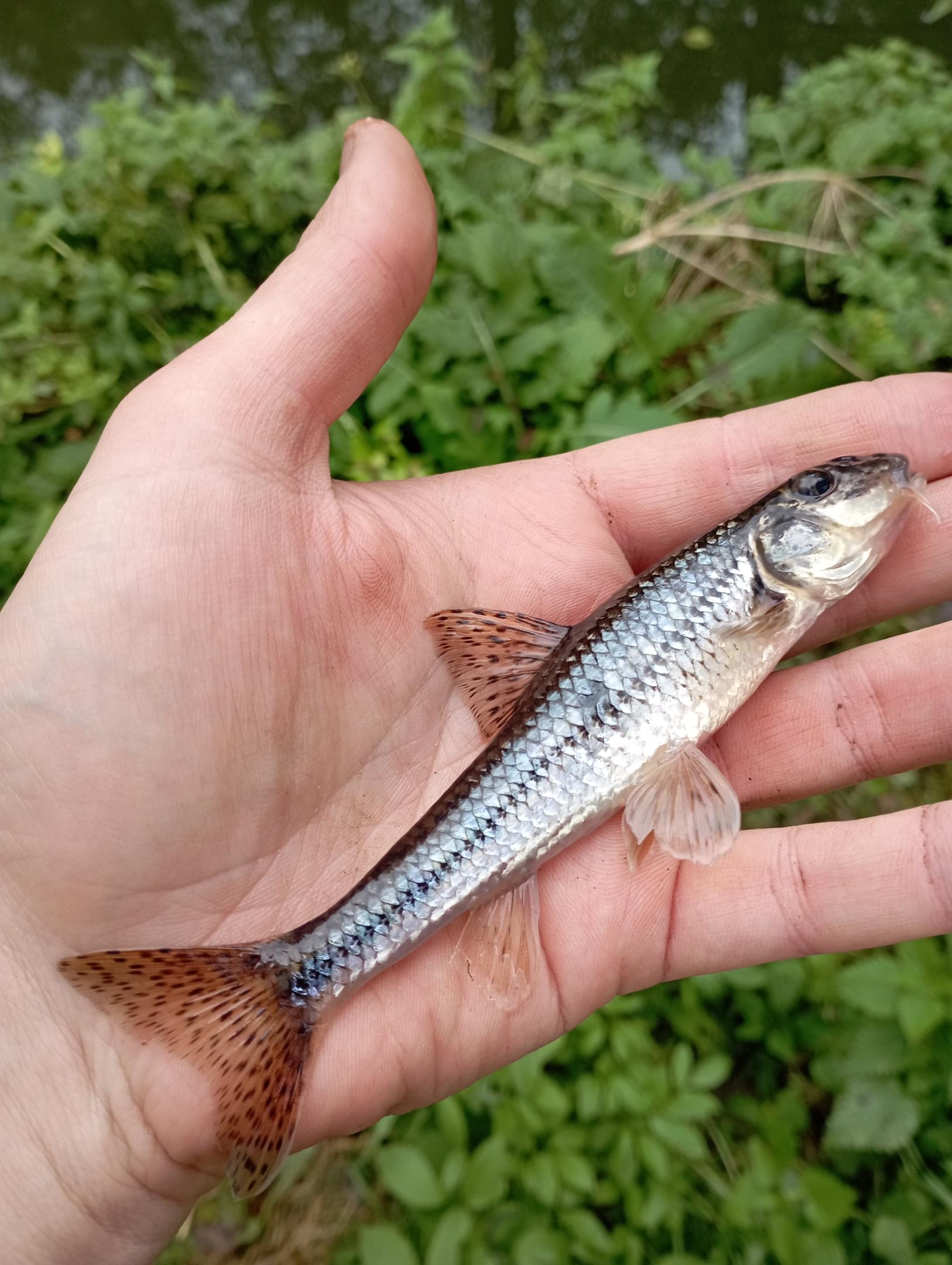 . В поисках хищника намахался спиннингом и веслами до "мышечной радости". Но всё-таки река смилостивилась и подарила одну щучку ( весы показали ровно 1 кг ). Периодически менял щучьи приманки на попла-поппер в поиске зачетной кпасноперки , но попадалась лишь мелочь живцового размера