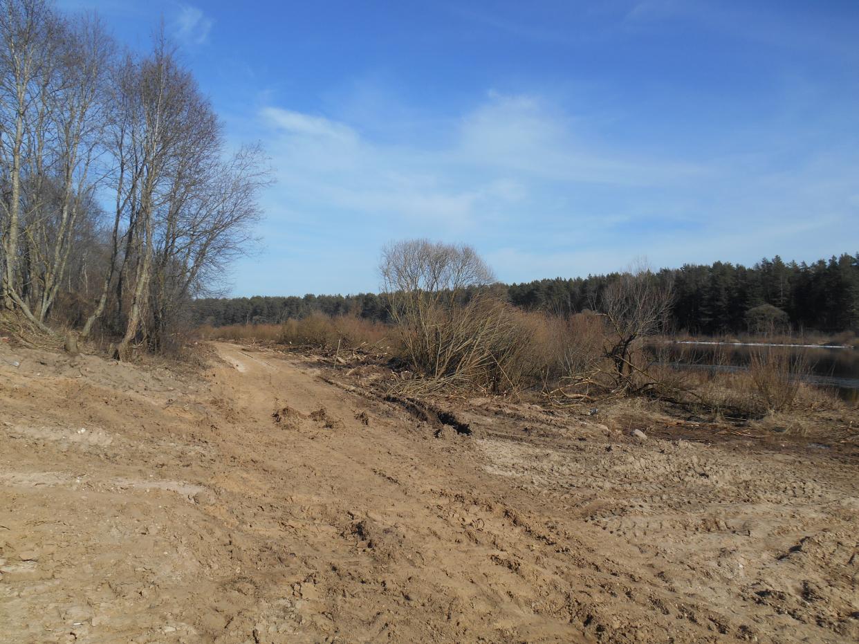 • Район дер. Задвинье. Весь берег засыпали толстенным слоем песка, отутюжили бульдозерами, выставлены разметочные колья. Видимо, это ГЭС неумолимо "выжимает" природу. Что-то затевается...