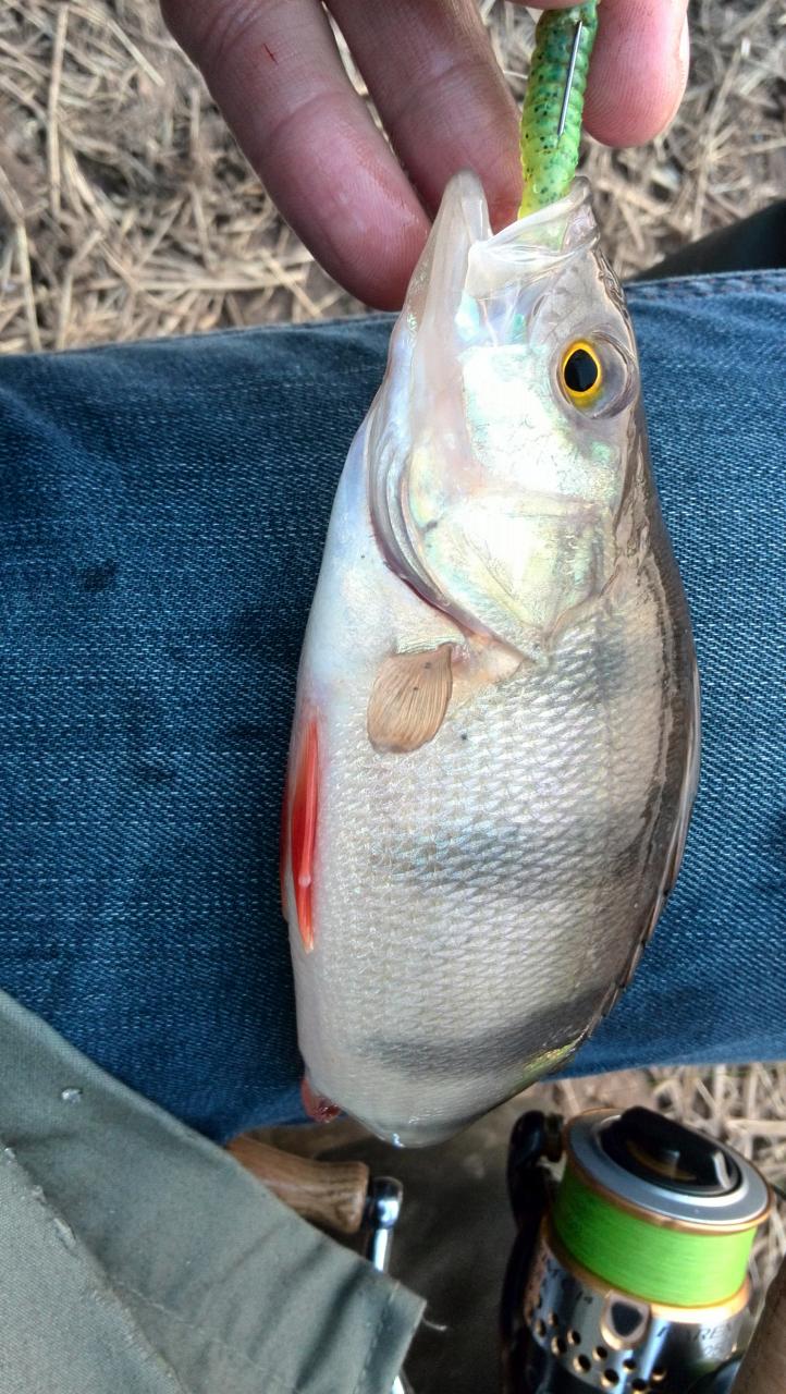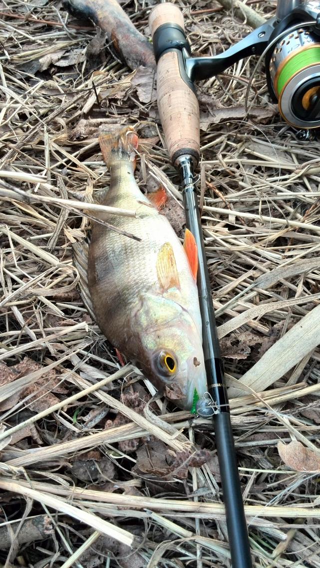 • Вырвались вчера с Алексом на рыбалку. Хотели половить белого хищника,или полосато-зеленого.... Первые проводки ничего не дают,кроме мертвого зацепа воблера(пришлось с ним распрощаться). Вскоре у Сани поклевка, достает щуку -вся в пиявках, быстрое фото и отпускаем. Решаю джиговать. Перехожу на съедобку keitech,и на второй проводке,поклевка(небольшой тук)-подсечка есть!!! Оказывается щука, быстрое фото,и на волю.