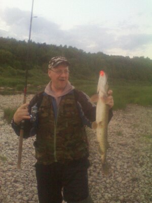 • Показал сегодня вечером Львовичу. В. всем известное рыбное место, надеялись на судака, жереха, ну может и сомика подержать , но этот хулиган взял и с первого заброса щупака достал, и естественно всей рыбалке капец Нажмите на изображение для увеличения.
