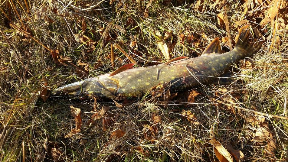 Таким способом с точки были неспешно сняты четыре окуня и получен почти десяток поклёвок. Когда окунь совсем перестал себя проявлять (наверное, мне посчастливилось попасть на какой-то выход), я всё же сменил приманку. Поставил двухдюймовый Swing Impact на пяти граммах. Его немедленно оценила небольшая щучка, клюнув на выбросе и срезав монтаж. Уже не первый раз замечаю симпатию щуки к этой приманке. Надо взять на заметку.