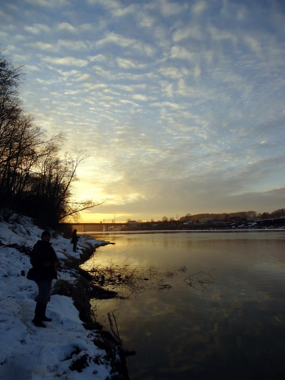 • Отпустивший «третьяк» подарил наконец долгожданную возможность выбраться на открытую воду в новом году, которую мы не упустили. Правда рыбы не было, даже никто ни разу не теребонькнул приманку, хотя меню пестрило разнообразием оснасток и приманок, от мормышки до каролины, от червячков до крупных ракообразных. Зато наконец-то уняли зуд в одном месте, насладились шикарной погодой и компанией друг друга. К тому же солнце провожало нас с реки уже совсем по-весеннему теплым закатом!