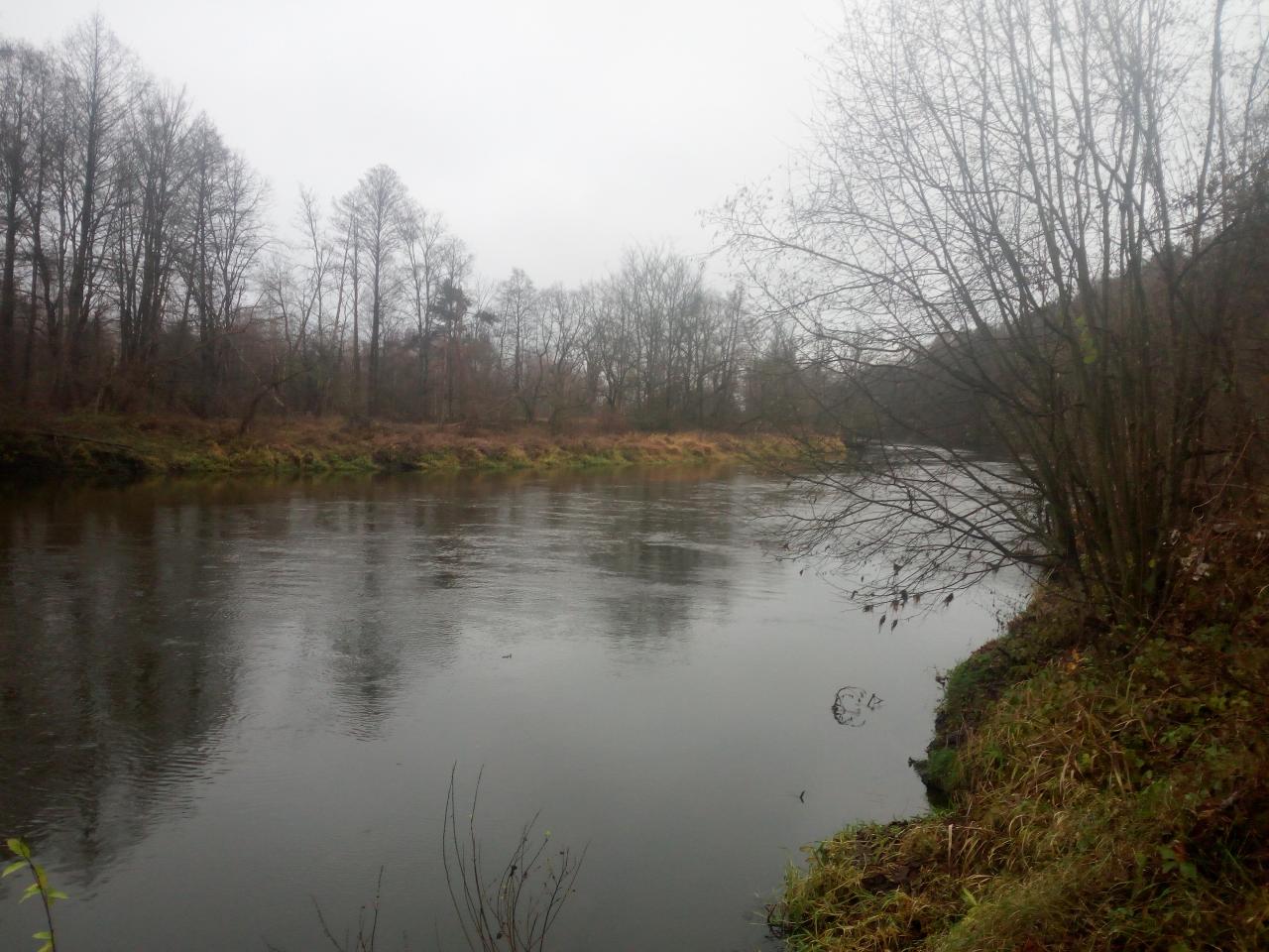 Река по кромочку заполненна. Низины затопленны. Водица в меру прозрачная.