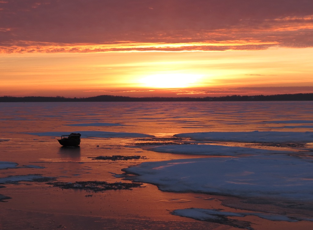 метров 500 от меня двое, по ходу, местные, упорно "трясли мормыху", постоянно бегая то вперед, то назад. Как позже выяснилось, бегали они зря.