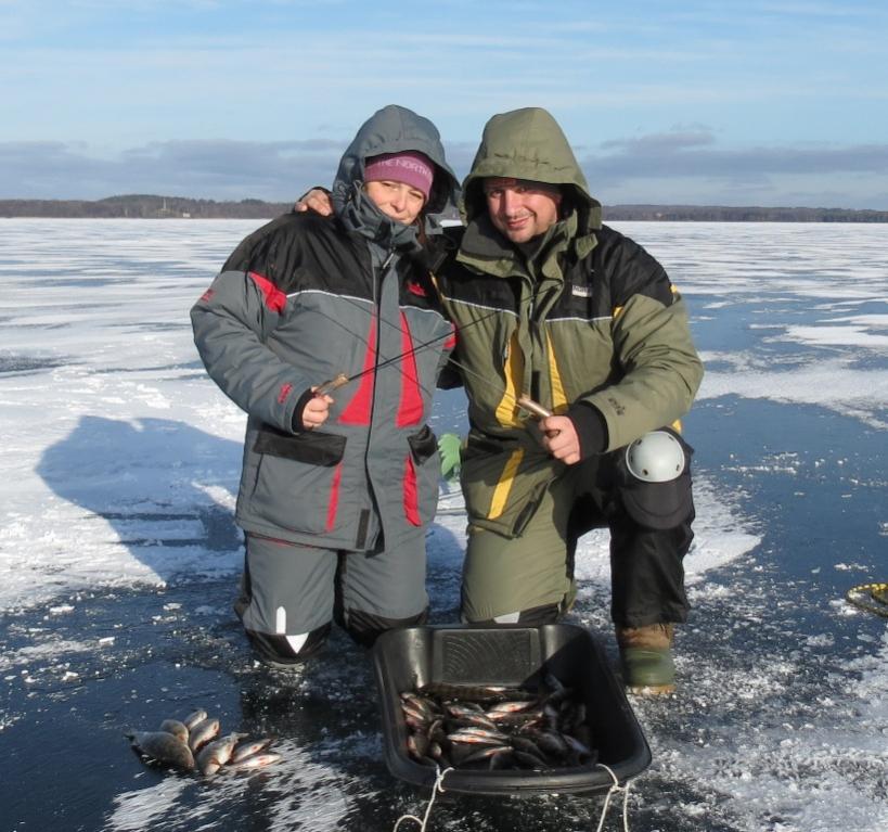 • Вот наконец и побывали мы семейным тандемом на зимней Нарочи. Нацеливались конечно на окуня. Надо сказать, что к Нарочанскому окуню надо ещё подход найти.:D В общем клёв более менее был, но не давал покоя мелкий окунь, поэтому перешли на более крупные блёсна. Это свело поклёвки практически на нет, но в то же время немного укрупнило размер окуня.
