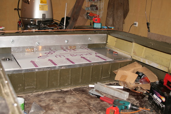 • Маленькийотчёт по Славиной Южанке2-за неделю что лодка стоит у меня развалил по тиху всё что было сделано до меня и начал собирать по новому.Как и чем было До-пропустим. Поднял и усилил транец под длинную ногу(сделал клин 1,5см,навесил мотор,проверил его в бочке.,высверлил и выкинул родную приборную панель (вернее то что от неё осталось),сваял новую.Задний рундук в процессе :)бак и акум решено переносить в нос-провода на акум и топливопровод уже протянуты,в борт уложен пенопласт,борт зашит (один пока).Конструкция транца как у меня на Обяхе-две пластины изогнутые буквой Г,шпильки к переборке,на переборке швелер 3/10/толщ 6мм.Срач в гараже такой что ходить не где.Куплены сидушки (третий ряд от какого о минивэна) Вот пару фоток-за бедлам в лодке сильно извиняюсьНажмите на изображение для увеличения.