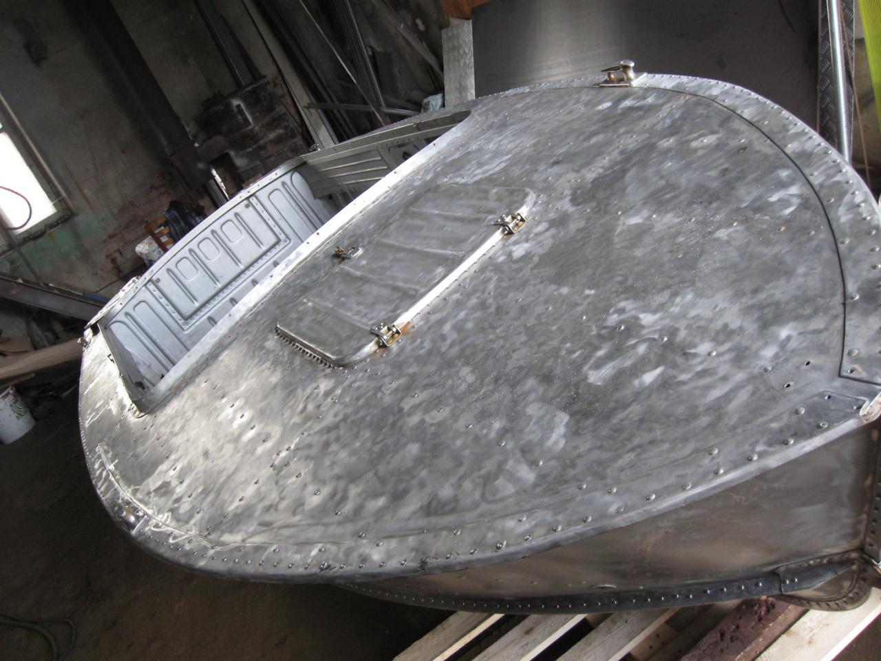 Взял люминия полоску 3 мм и с кумом при помощи 2-х молотков "выстукали" заподлицо. Внутрь полиуретанового герметика и посадил на заклепки поверх.