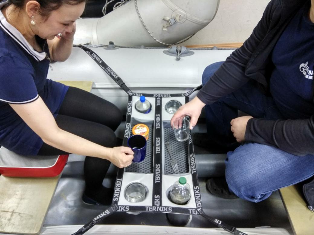 Ерунда этот девайс. Т.к. в ПВХ лодке обычно нет места. Ни в 360-й ни в 380-й. Весь кокпит, как правило завален шмурдяком и снастями. Если учесть (по фото), что бутылки и стаканы провисают до пола, то нужно прежде чем развернуть и навесить этот "стол", разгрести на полу поляну. Гораздо проще одному или двоим пересесть на баллоны а на банке спокойно перекусить. В общем, моё имхо - некчемная приблуда.