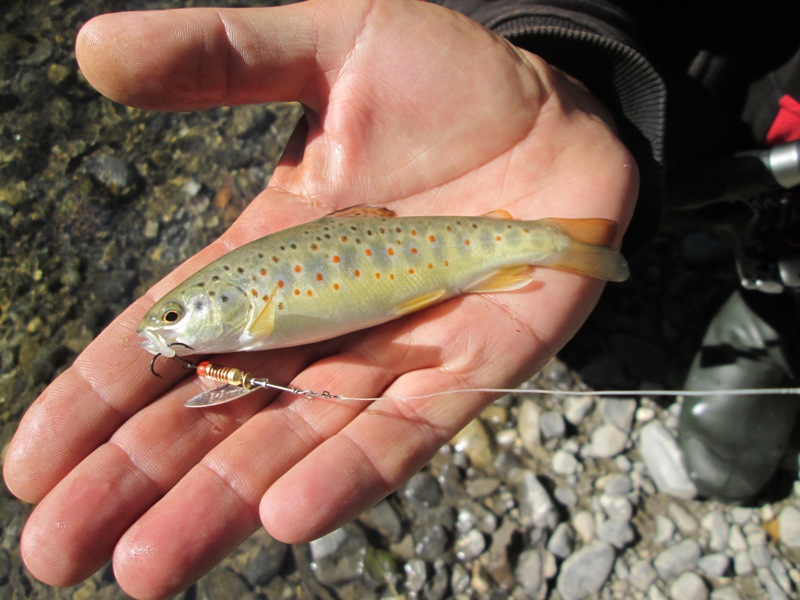 ID:	3699592 мой новый спиннинг TEAMSALMO Tioga до 8гр. на форелевой рыбалке.Рыбалка по принципу ничем не отличается от нашей, ключик к местной форели подобрали быстро. Рыба отличалась своей дикостью, брала все предложенные приманки. Спиннинг отлично вязал мелкую рыбу, точность заброса порадовала.Нажмите на изображение для увеличения.