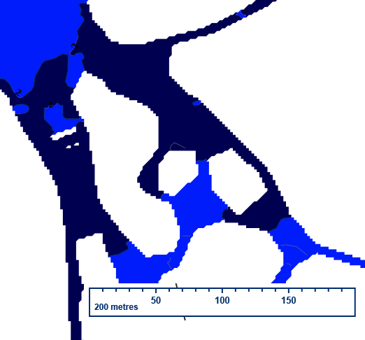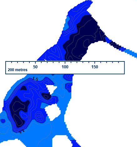 Размеры: 6,2 х 3 км, площадь 7,68 км.2, наибольшая глубина 2,4 м.