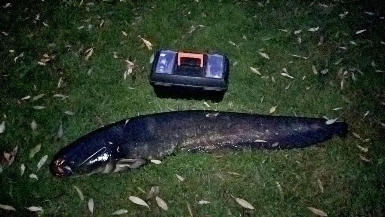 ID:	3829758 Главное случилось совсем на закате!!!! В прошлом году пришлось отпустить хорошего сомика, пойманного во время запрета. Но в этом он,уже подросший, на том же месте снова попался. Не знаю как, но воблер зацепил его одним крючком за конец хвоста. И минут 20 он славно катал меня на лодке по озеру. Но я то сначала не знал, что тот держится за хвост)))) Думал, что за монстр там!!! Потом когда он устал, (как и я) всплыл на поверхность. Возникла другая проблема, как вытащить его из воды, когда в подсак влезала только примерно его треть! Но с третьей попытки удалось с подсаком на голове подтянуть его к лодке. Дома взвесил и измерил длину- 25 кг и 160см!!!Нажмите на изображение для увеличения.