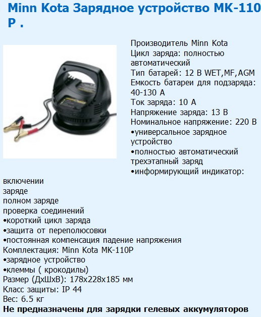 Уточнял этот момент, до недавнего в инструкции на Миннкотовскую зарядку было написано жирным, что гелевые нельзя. Тоже ответа не получил. Склонился к тому, что россияки так перевели инструкцию с английского (тут оригинал). НА 3-1 странице написано:Сообщение от MAER Посмотреть сообщениеВ своё время мучил вопрос выбора АКБ и зарядного для него. Так вот для гелевых АКБ насторожило последнее предложение в описании зарядного от Минкоты у Валеры (Шатера).