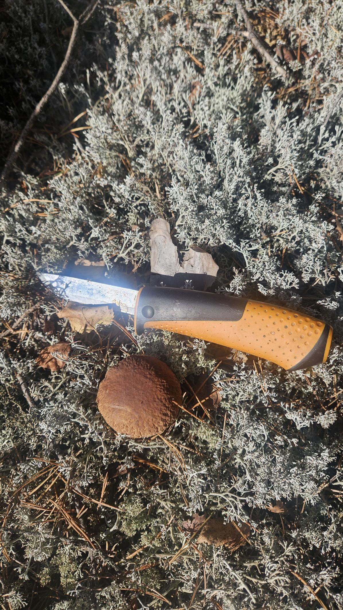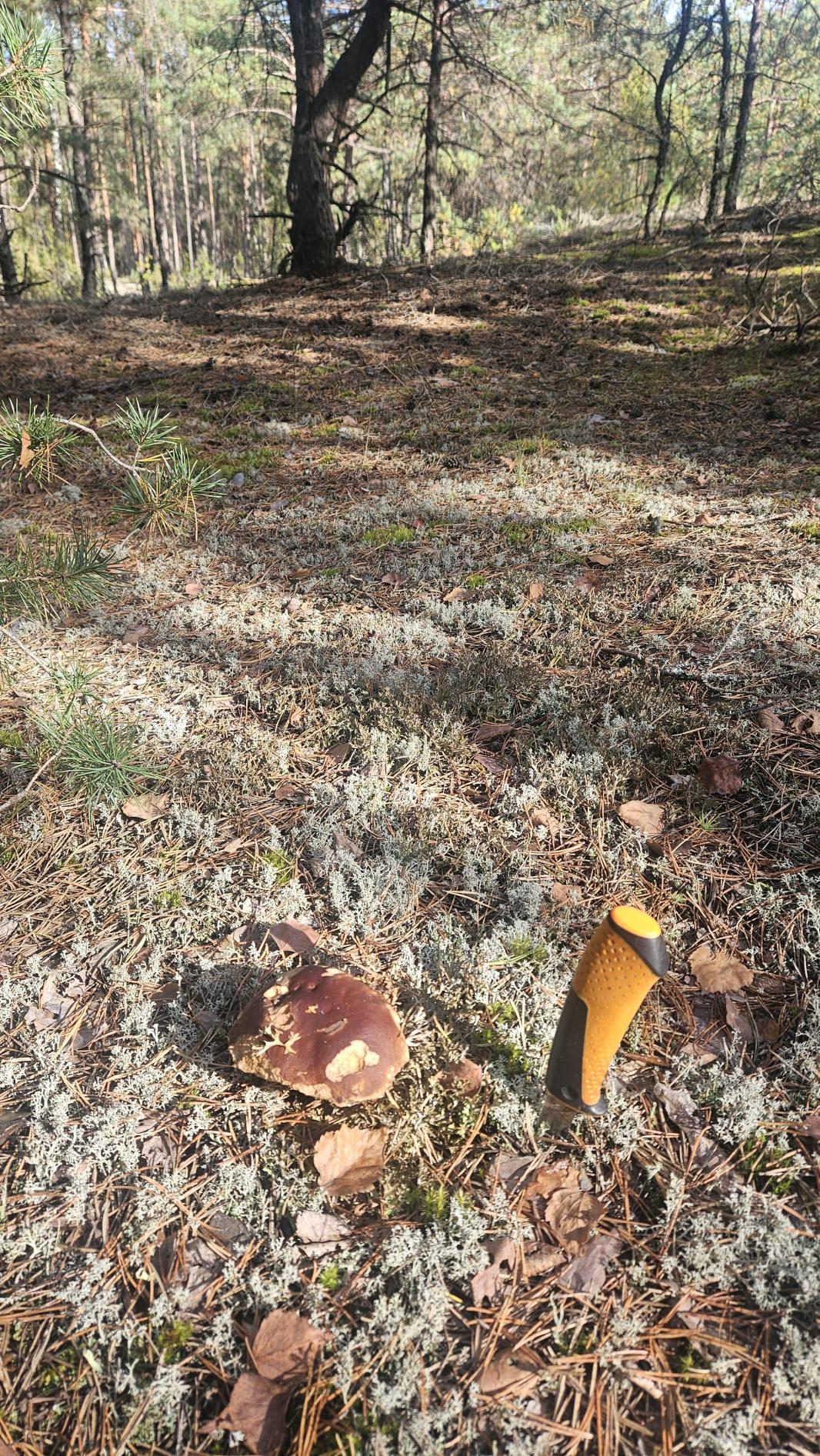 Дальше пошёл пешком чесать обочину по дороге. Далеко не ушел. Наткнулся на 2 боровика, большой