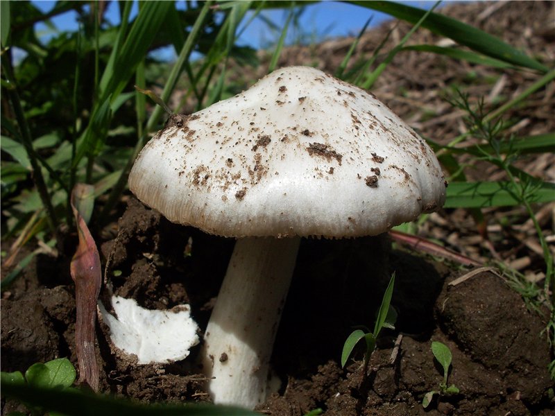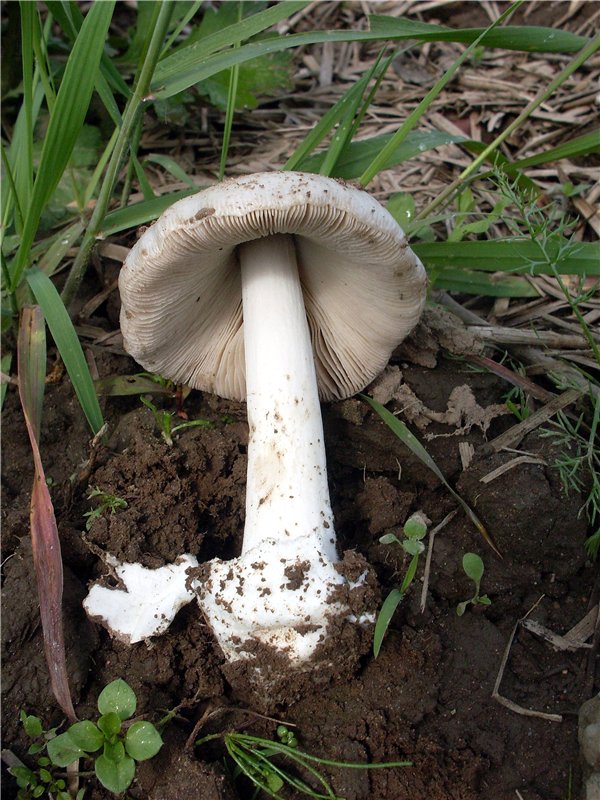 ID:	3439931 В основании ножки- вольва, "мешочек". Ножка без кольца. Стопудово растёт в полях с озимыми.