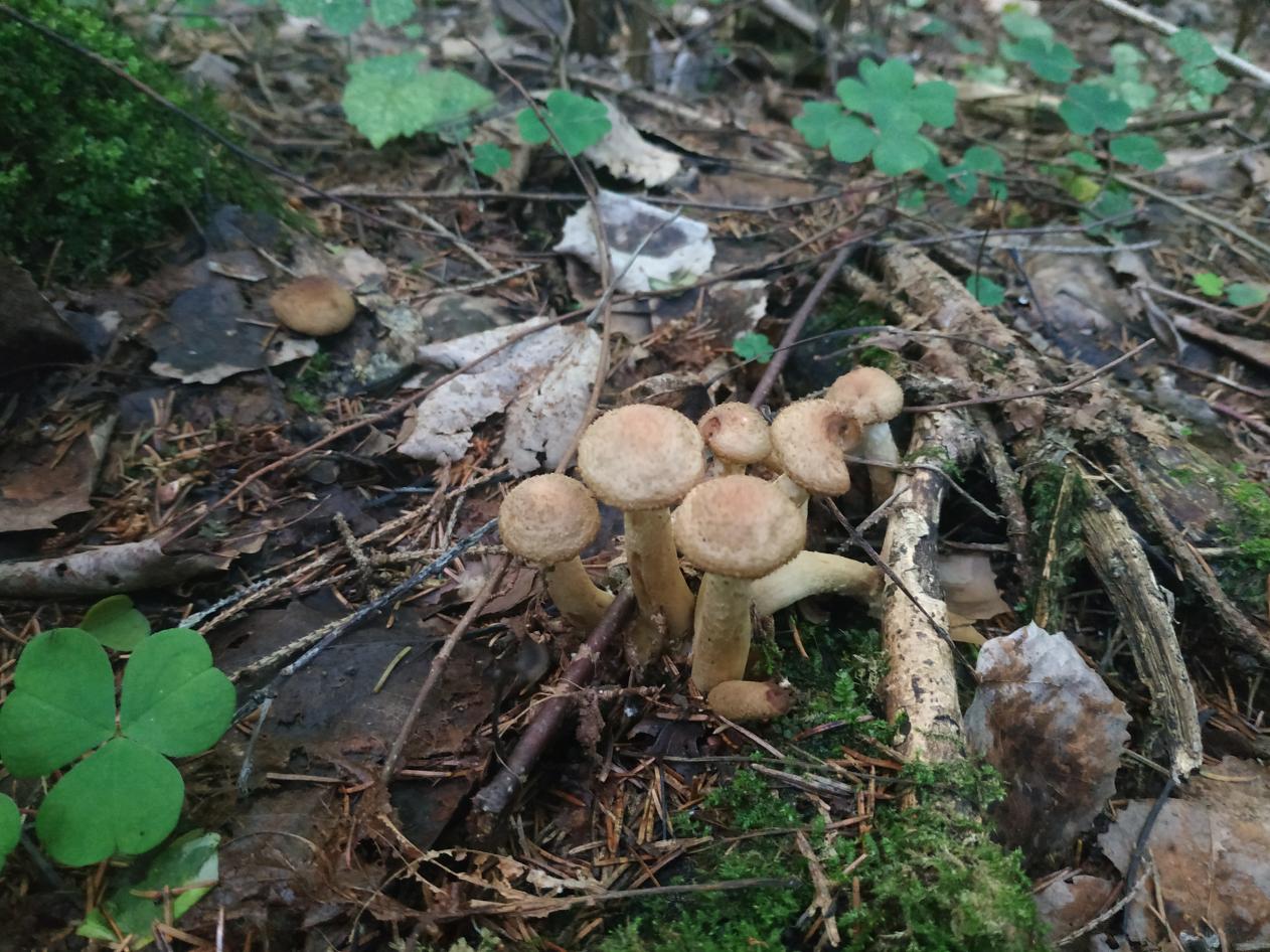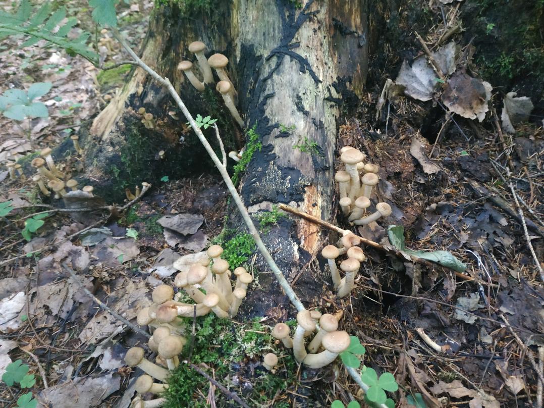 Грибы есть, но все перестоявшие. Похоже, вылезли по первой волне дождей и все. Новые не растут. Хотя и влага вроде есть.