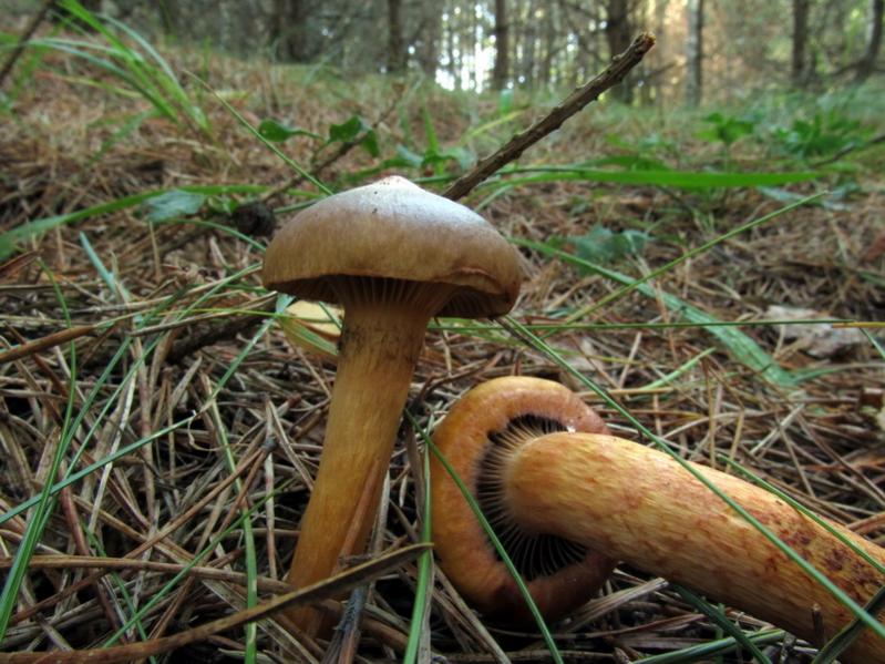 • Есть, у меня, в лесу небольшая полянка, на которой растут лисички. Каждый год, летом, раз в две – три недели снимаю урожай. Но только не в этом году. Сегодня, там, обнаружил всего три штучки. Почва в лесу влажная. Из грибов, кроме выше упомянутых лисичек, один молоденький – молоденький подосиновик, один мухомор красный, одна сыроежка зелёная, одна золотистая. Парочка неопознанных паутинников, пенёк с ложноопёнками сернисто – жёлтыми. При выходе из леса, у края лесной дороги, множество маслят. Большинство больших и ужасно червивых, но удалось набрать грамм триста самых маленьких, слизких пупочек. А в высокой траве, у трёх осинок, метрах двухстах от леса, сидела симпатичная семейка из пяти подосиновиков. При этом меня посетило чувство, что как будто я поймал в неклёвый день леща на два килограмма.