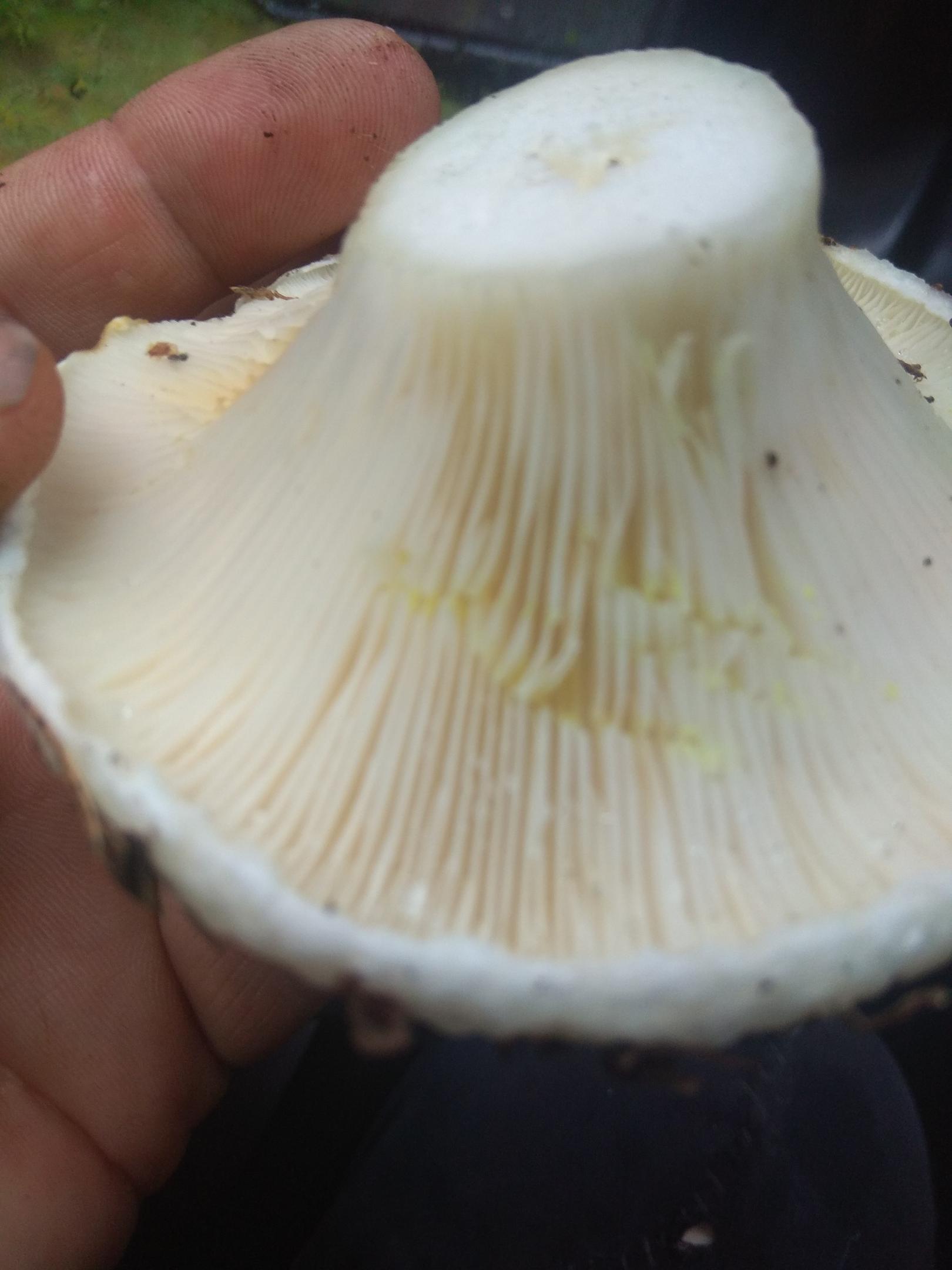 Сам специально царапаю пластинки чтобы проследить за соком на сломе , он минут за три пять заметно желтеет . Именно на пластинках , на срезе ножки его чаще всего нет. И потом он ещё более темнеет . Один царапнул , если есть контакт , то режу всю семью :) , они обычно по штук десять растут а то и больше. https://www.brik.org/filedata/fetch?id=4534594