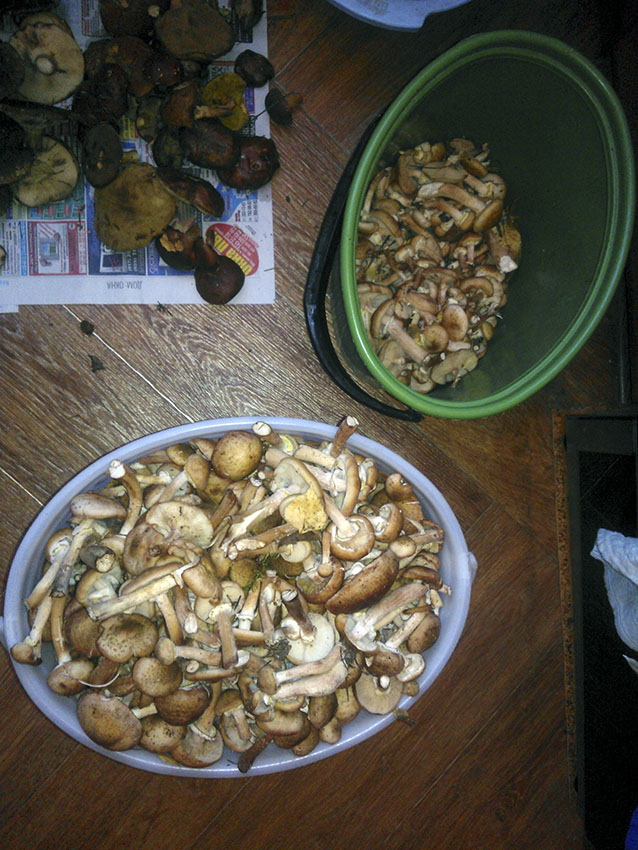 . Подберезовики и опята брали мало, курочки не брали совсем, их да, только триммером можно было. Как, впрочем, и опята. До следующих выходных грибную лихорадку погасили.