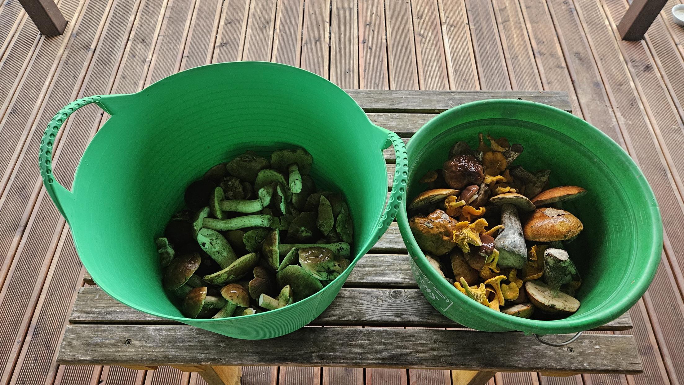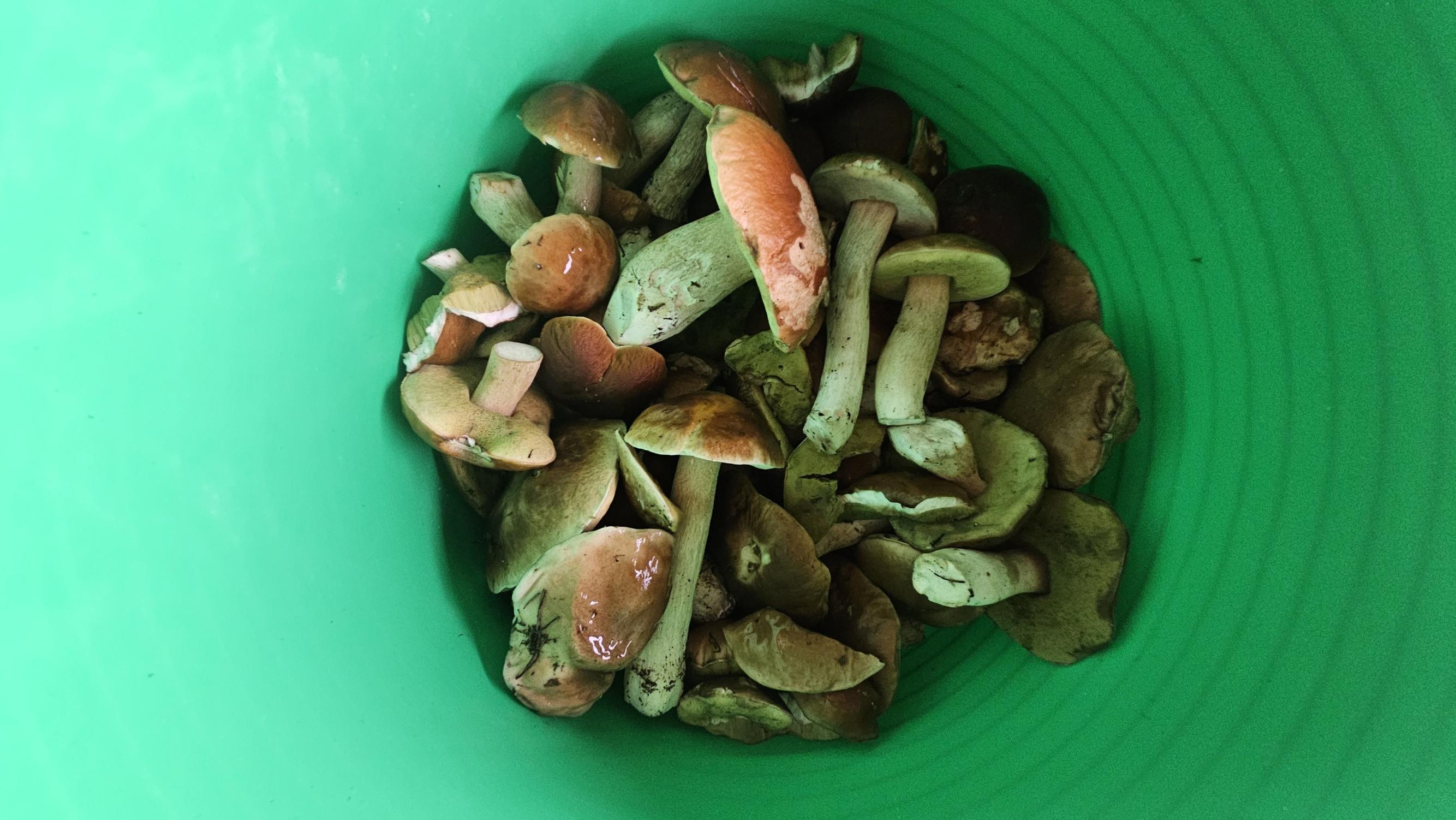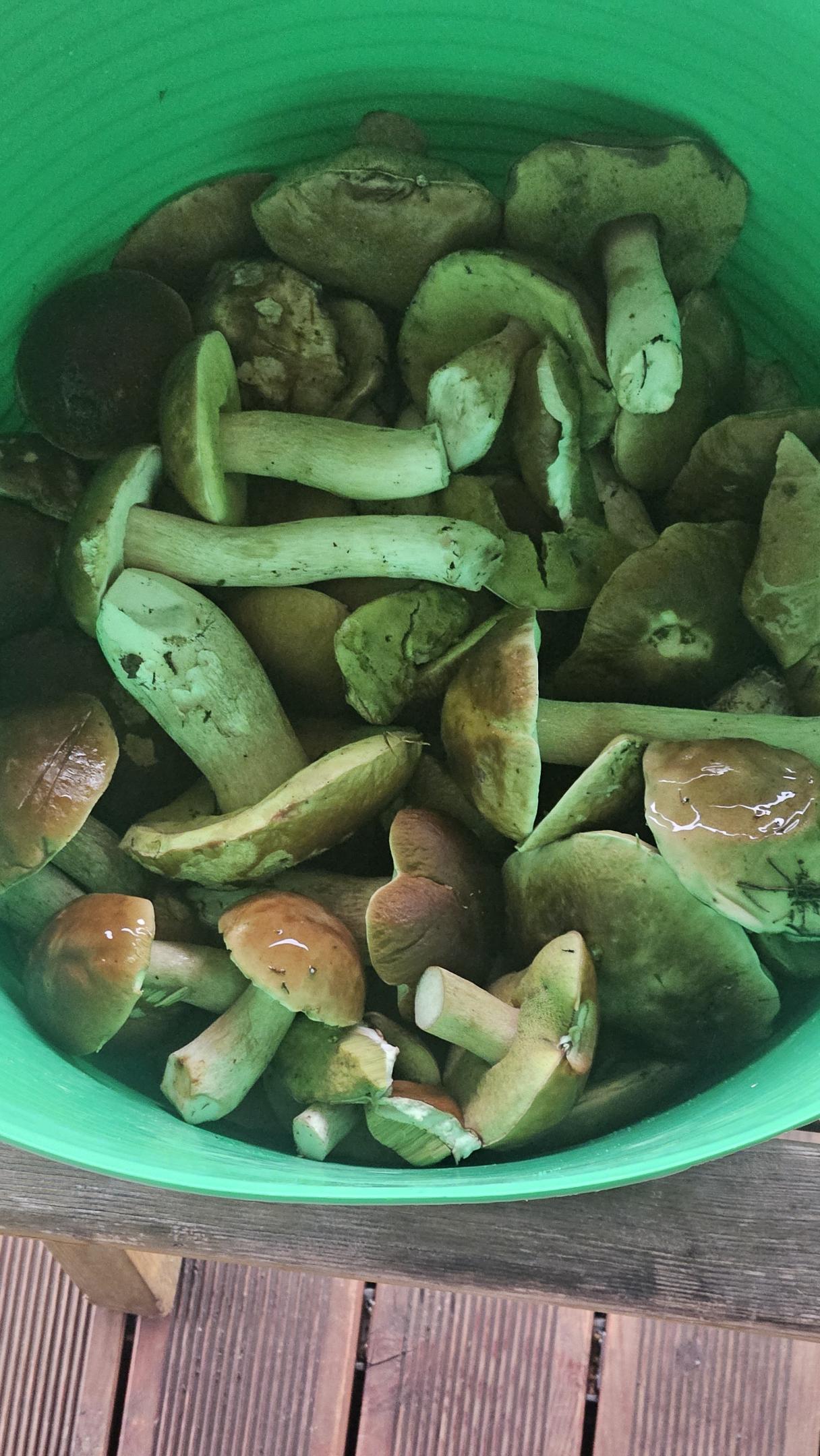 В улове сегодня 62 боровика, столько же примерно подосиновиков, брал ещё лисички, интересно что их немало.