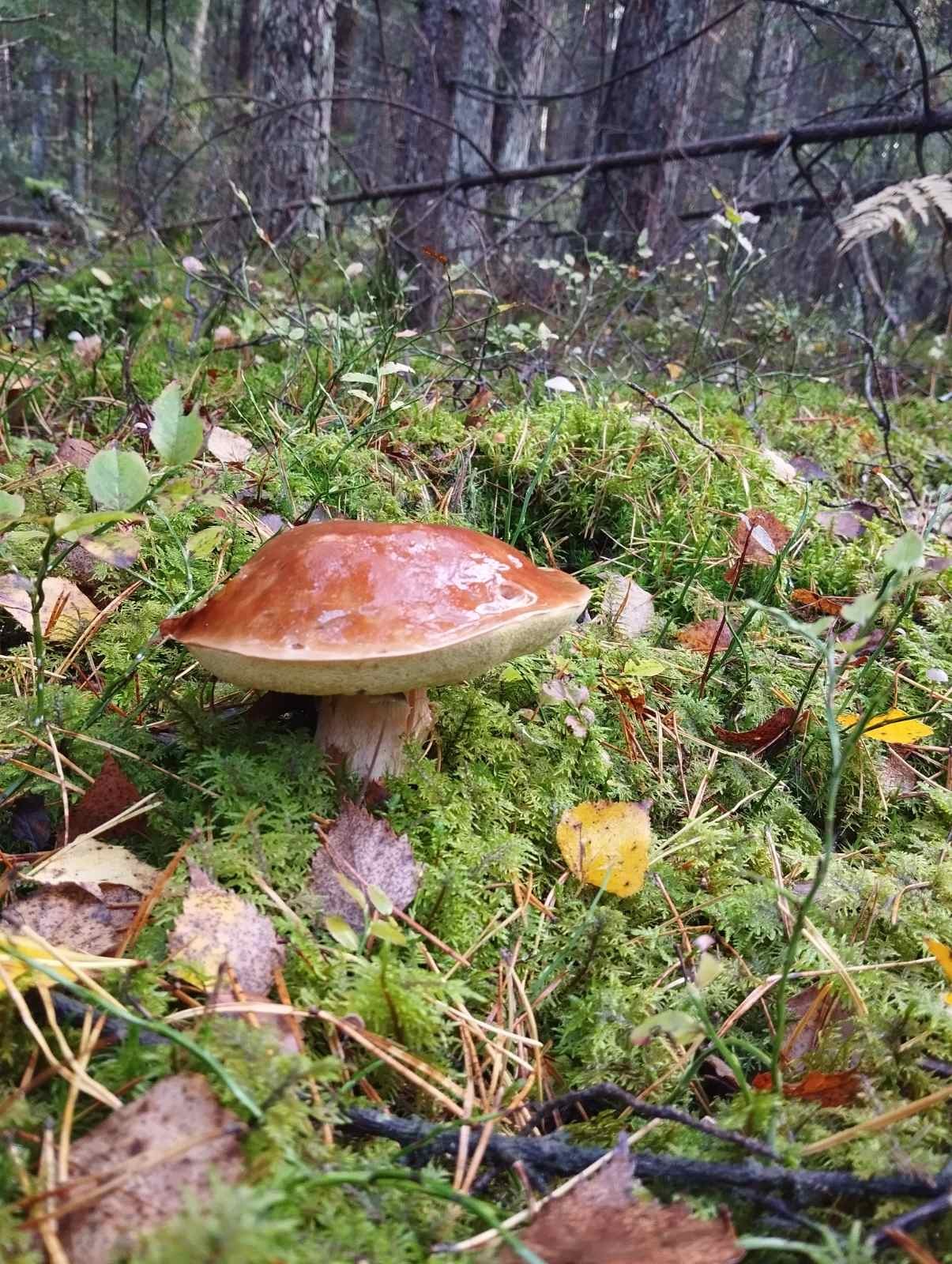 Выяснилась немаловажная деталь. Грибы, в отличие от летнего сбора, растут сейчас на высоких местах во мху, мох подходит и зелёный, и белый.