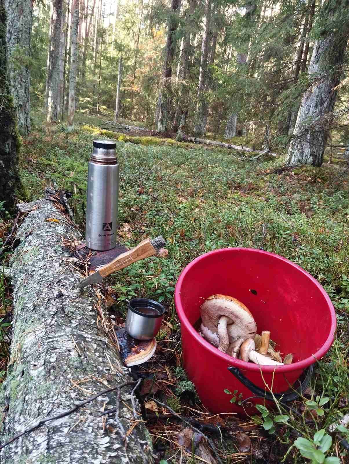 Выдвинулся в заданный район еще затемно, даже пришлось ждать рассвета в лесу. Для начала решил проверить боровой лес. Здесь и нашел первый боровик. Но стало понятно, что до меня по лесу пробежала толпа бизонов, и не один раз, потому что повсюду лежали корешки от срезанных грибов, а самих грибов то и не было!
