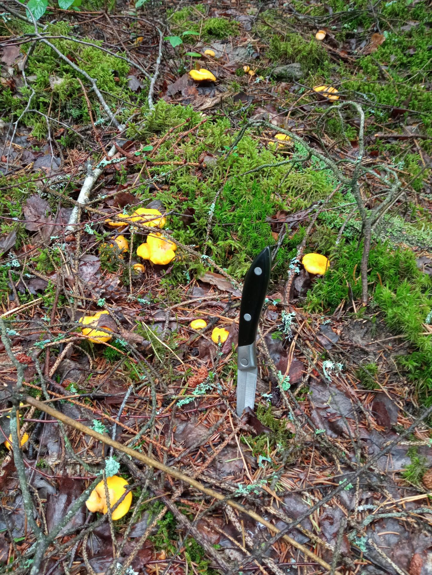 Лисичек на добрую жарёху - наскуб быстро и весело. Ну и черники хватает, и земляники следы - тоже есть...