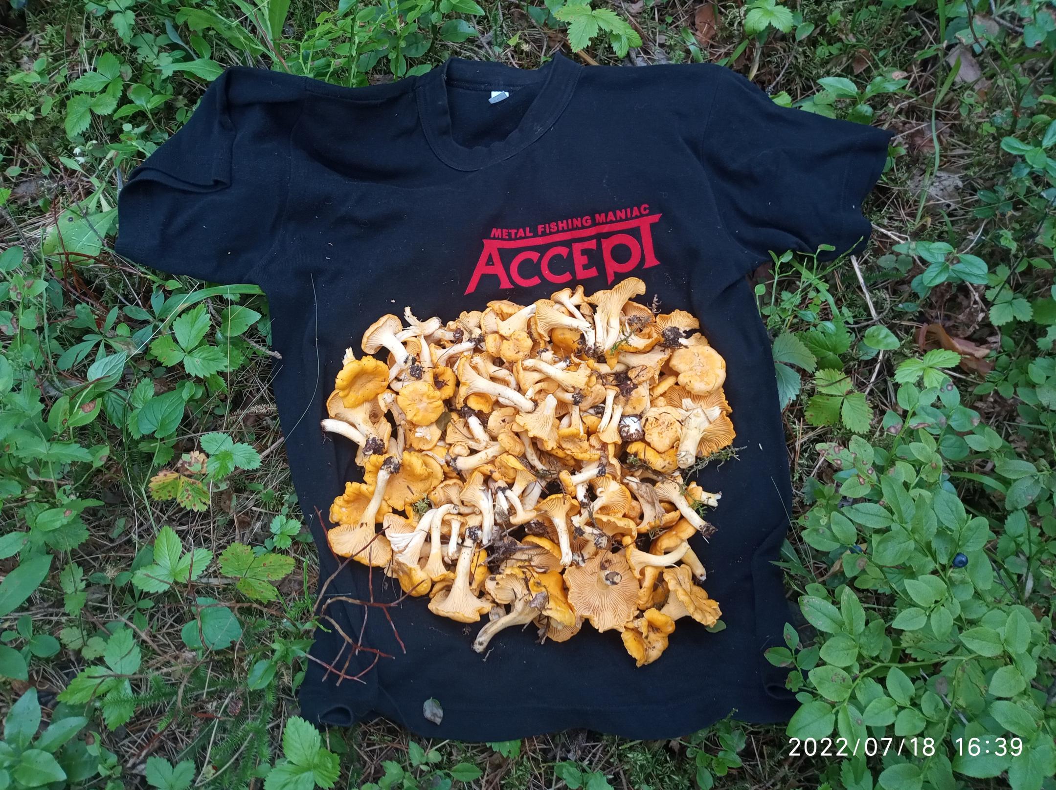 • В субботу проверил все свои лисичковые и не только места в Колодищах, в большом лесу. С трудом на жареху и супчик с плавленным сыром. Луж нет. А это верная примета того, что грибов будет мало. Три сыроежки в довесок.
