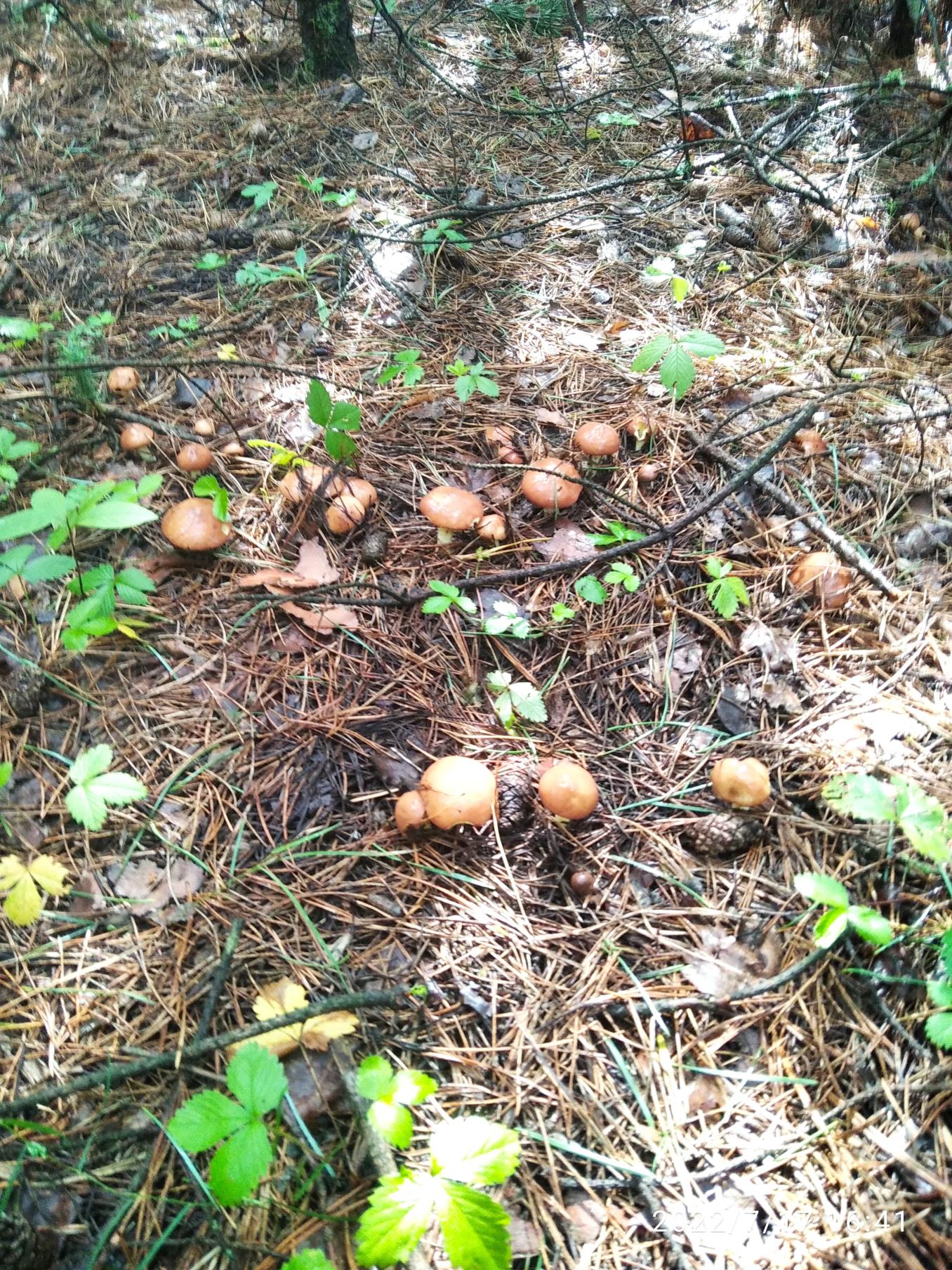 • Выехал в лес после трёх. Дождь заканчивался, но все же малехо застал меня в лесу. Затем резко выглянуло ослепительное солнце и было бы жарко. Хорошо, что ветерок повевал .Употел однако. Цель была набрать "бандитское" трехлитровое ведёрко лисичек дочке ко дню рождения с молодой картошечкой. Заехал на грядку и сразу взял сколько планировал. Вышел на дорогу к машине, и краем глаз замечаю в папоротниках блестящие после дождя шляпы маслят. Честно скажу - не ожидал! Машина была рядом. Быстро ставлю ведёрко, беру строительное на 12 литров и в сосняк. Оттянулся. Много червивых. Но и молоденьких откалиброван. Старался брать светлошляпые. Ну и людям оставлял по крупнее.. Почти половину ведёрка литра четыре с половиной- пять взял, да плюнул. Много ли человеку надо? Удовольствие получил. Чего и вам желаю! Нажмите на изображение для увеличения.