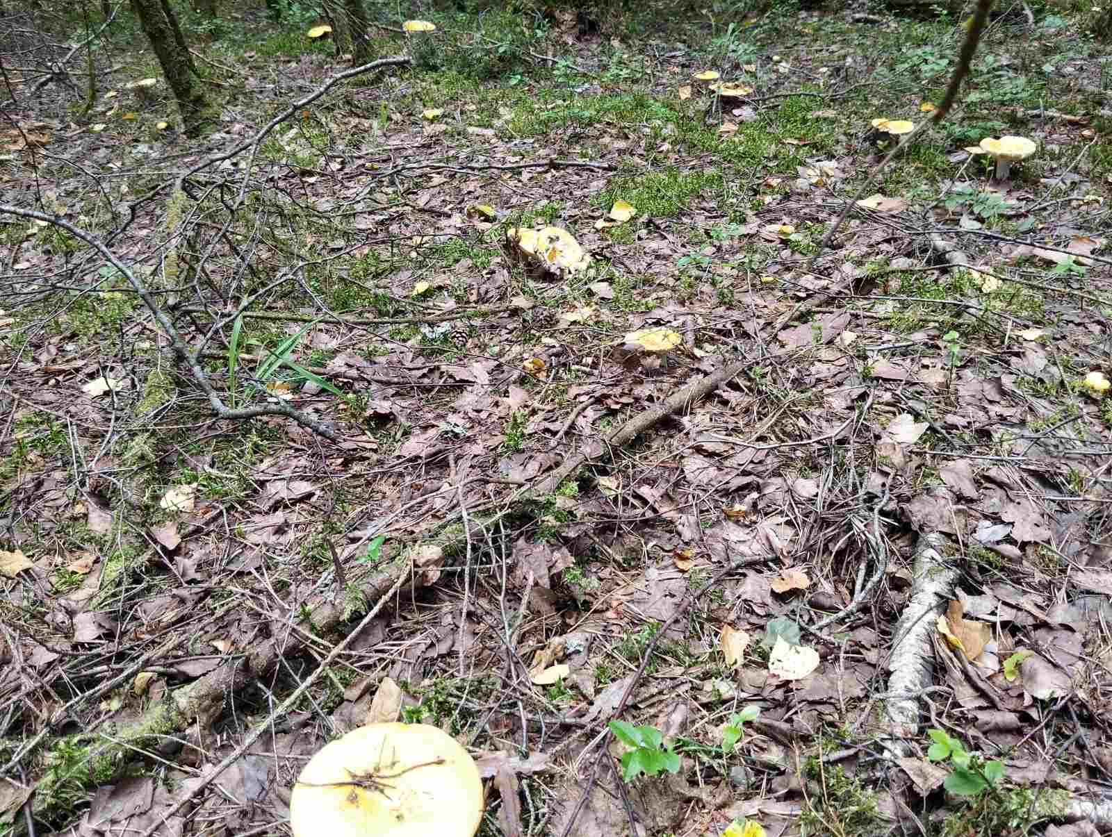 Зато жёлтых сыроежек куча, и что удивительно, даже были чистые... такое раньше редко встречал. У нас в семье, с этими сыроежками хохма была. В какой-то негрибной год, собирали грибы. В лесу их мало было, только иногда подосиновики, и эти жёлтые сыроеги. В конце сбора смотрю, у меня полведра, а у бати - полтора. Ну думаю, молодец батя! А дома выяснили, что он просто забыл очки, и вволю насобирал этих желтых сыроегжек, которые только без очков... нечервивые!
