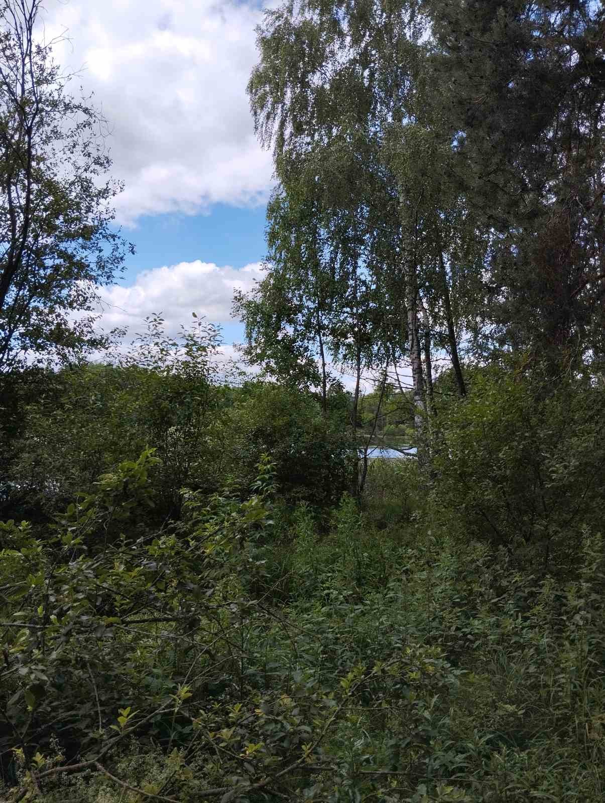 Зато концовка моего забега по буреломам была шикарная. В конце леса, есть шикарная поляна, откуда даже немного видно озеро.