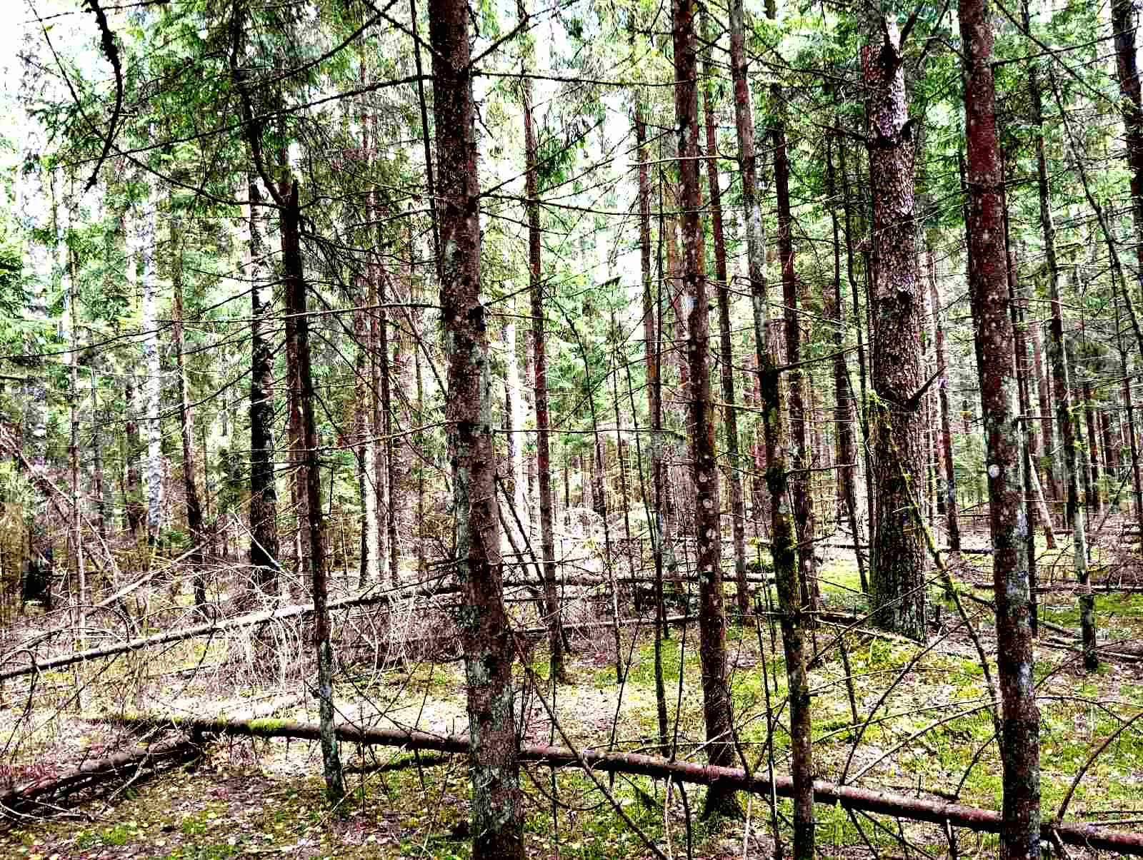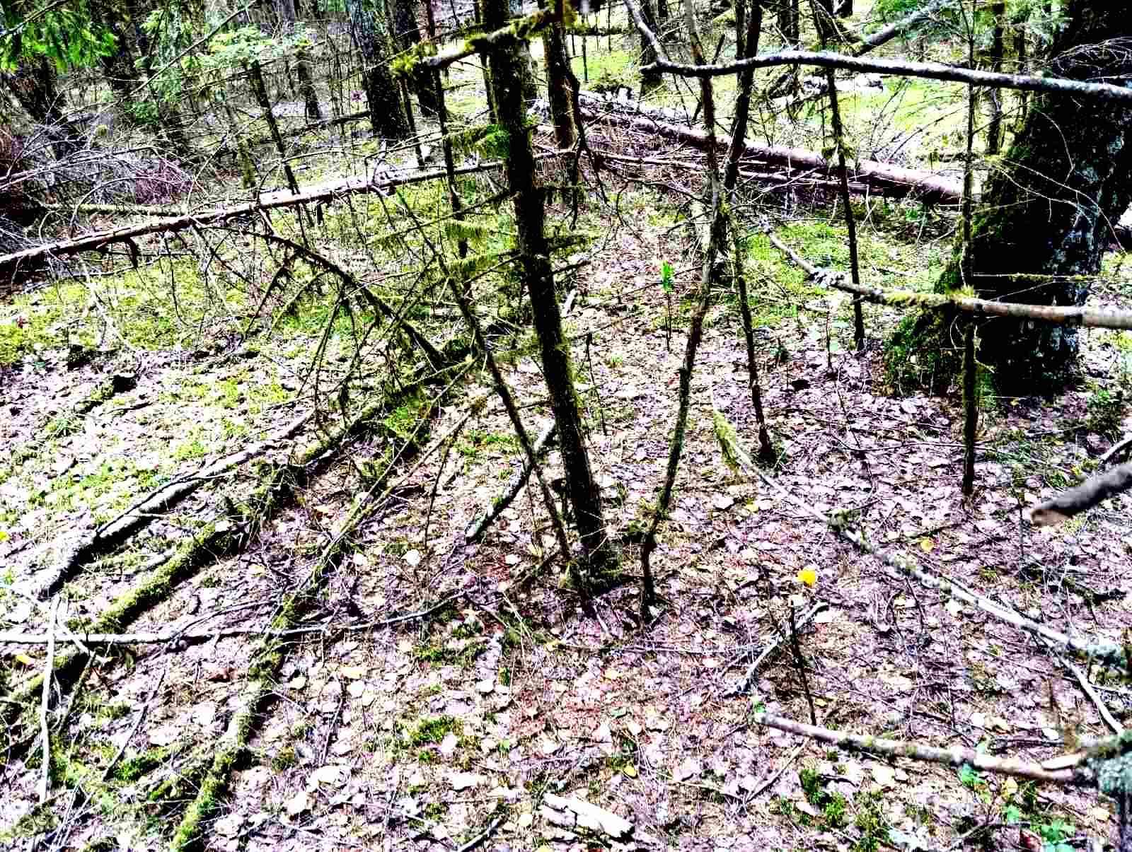 Ушёл в другой лес... там тоже уже началась чистка, плюс ураган с корнем выдернул кучу деревьев, и это место такое же Г. как и предыдущее... может и хуже - невозможно ходить. Да и грибы часто не любят захламленные леса.