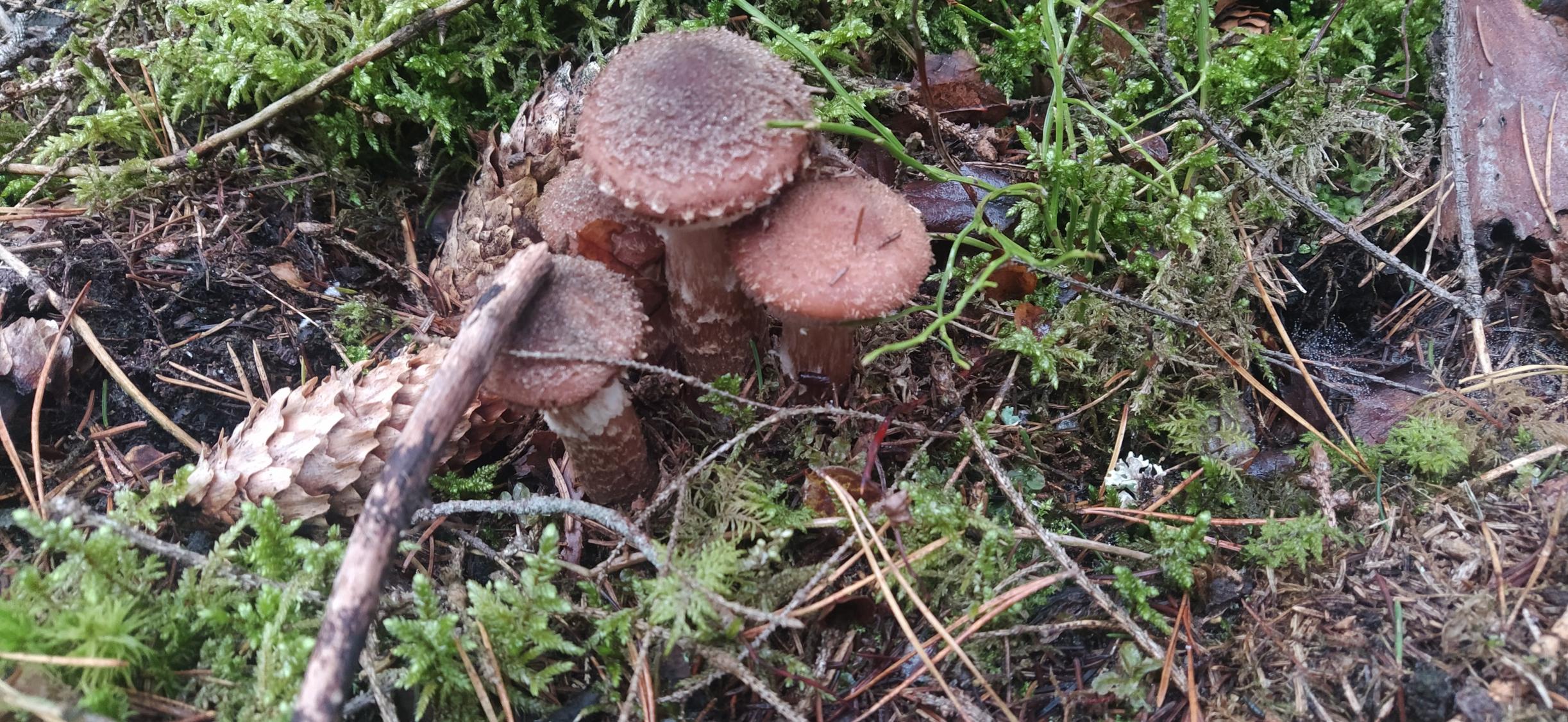 • Сегодня посетил раковское направление. Гулял меньше 3 часов. В лесу тихо, птиц не слышно, следов присутствия зверей много. Грибы есть, но тех что я беру не много. Пару пней летних, замёрзших, бросаешь в ведро звук как камушки. Десяток осенних, пяток польских да столько же лисичек, пару сыроежек. Пол ведра нагулял и хватит. Настроения всем!