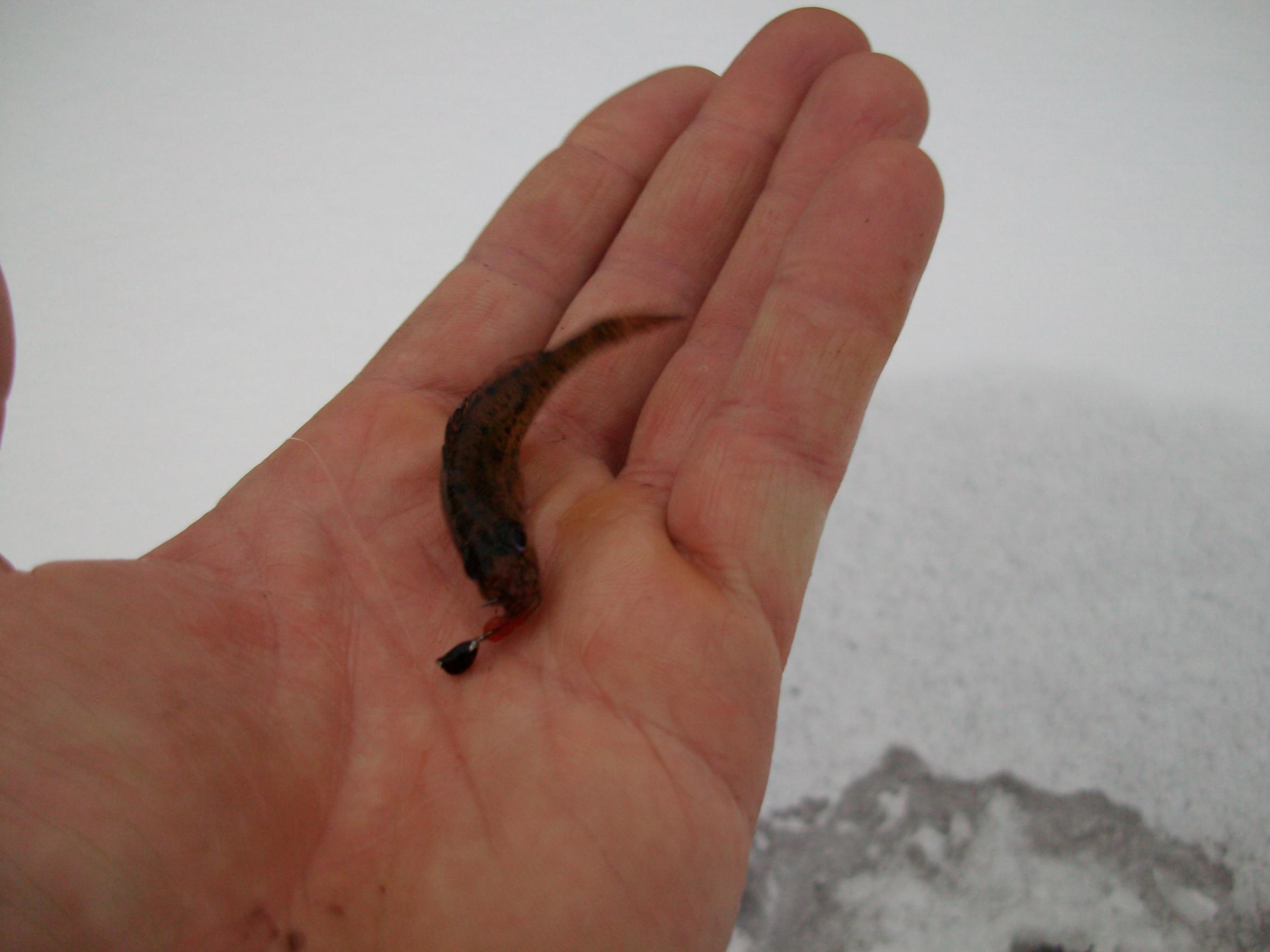 После расстановки жерлиц, решил проверить свою первую закормленную лунку. И там меня ждал успех. А точнее сопливый. Заброс на дно, выкладка кивка, подсечка, приятная тяжесть при вываживании. За час насобирал 5 неплохох подлецов граммов 250 кажный. В 15-30 начал сворачиваться. Итог: 1.5 кг подлеца с плотвой(видимо это моя норма), 2 сработки, адреналина хапнул.
