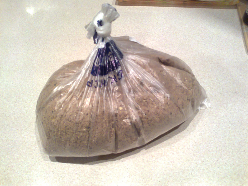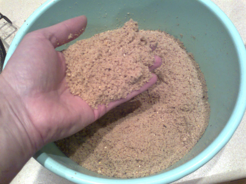 ID:	4425705 перемешиваю руками стараясь разбить все комочки (по возможности)...оставляю всё и занимаюсь утренней суетой... через 20-30 минут (не принципиально)смесь стала вновь практически сухая, впитав в себя воду... наступает ответственный момент - повторное увлажнение Нажмите на изображение для увеличения.