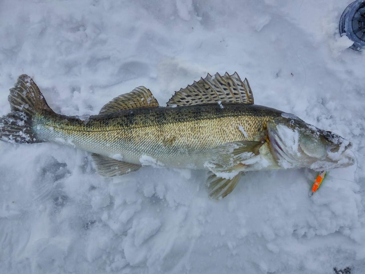 Семи утра не было, приступил к ловле. По старым лункам, а также по великолепному множеству новых бегал в поиске... Несколько тычков, похоже, окунёвых. И всё. Не меньше трёхсот лунок обошёл точно. Не поверю, что под нос ему не попадала снасть. Не хочет судак клевать. Пёс его знает, чего