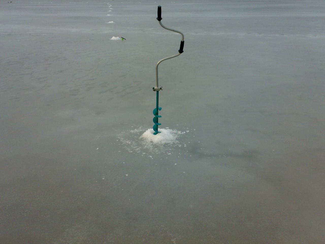 А может вчера наелся и стоит стоймя, переваривает? Не знаю. Я ж не судак))) Лёд в месте ловли ещё вполне себе ничего, с ночи сухой и подмороженный, днем потиху кристаллизуется, но пока терпимый. Опасность представляют там-сям встречающиеся не понятно как размытые до безобразия отверстия, в которые не дай б влететь. Два таких встретил