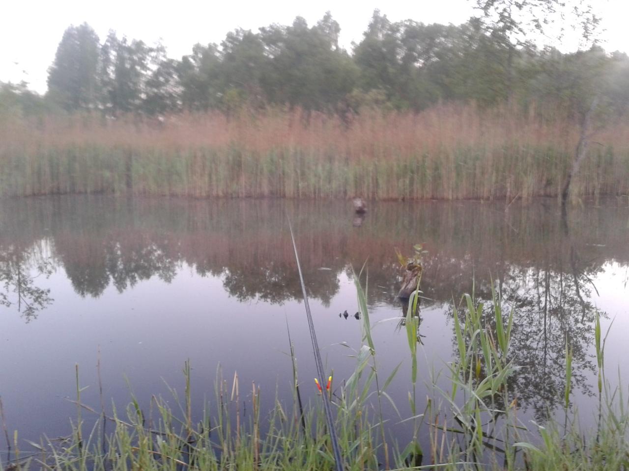 4:30.Мы на месте.Первые.Водоём понравился сразу,чувствовалось,что карась здесь быть должен,но мест для ловли с берега не очень то и много...Располагаемся - я,брат.